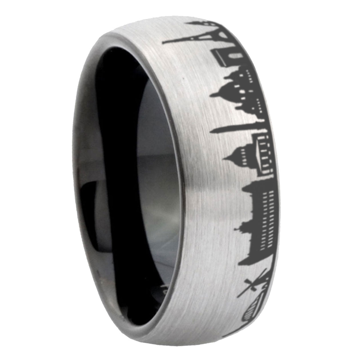 8mm France Paris City Dome Brushed Gray Tungsten Black Inside Promised Ring