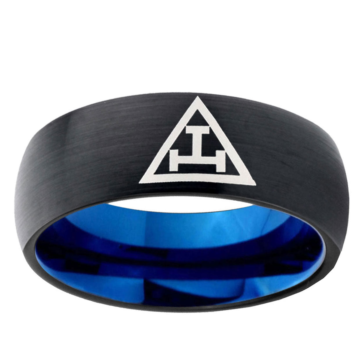 Intruding 5, 8mm Masonic Triple Dome Black And Blue Tungsten Carbide Personalized Ring . Offer in both 5mm and 8mm band width black and blue plated finished from size 4 to 14