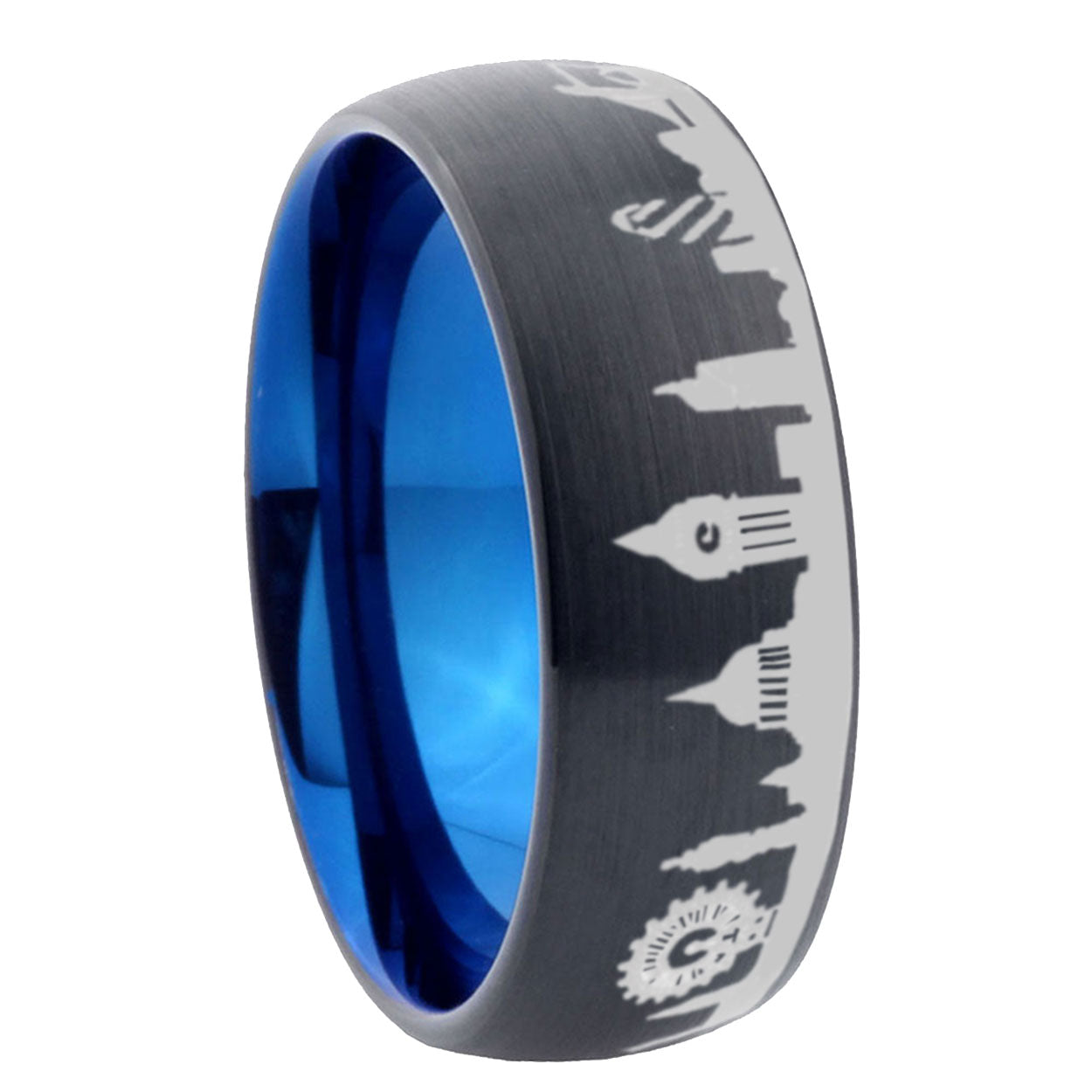 8mm UK London City Dome Brushed Black Tungsten Blue Inside Mens Wedding Band