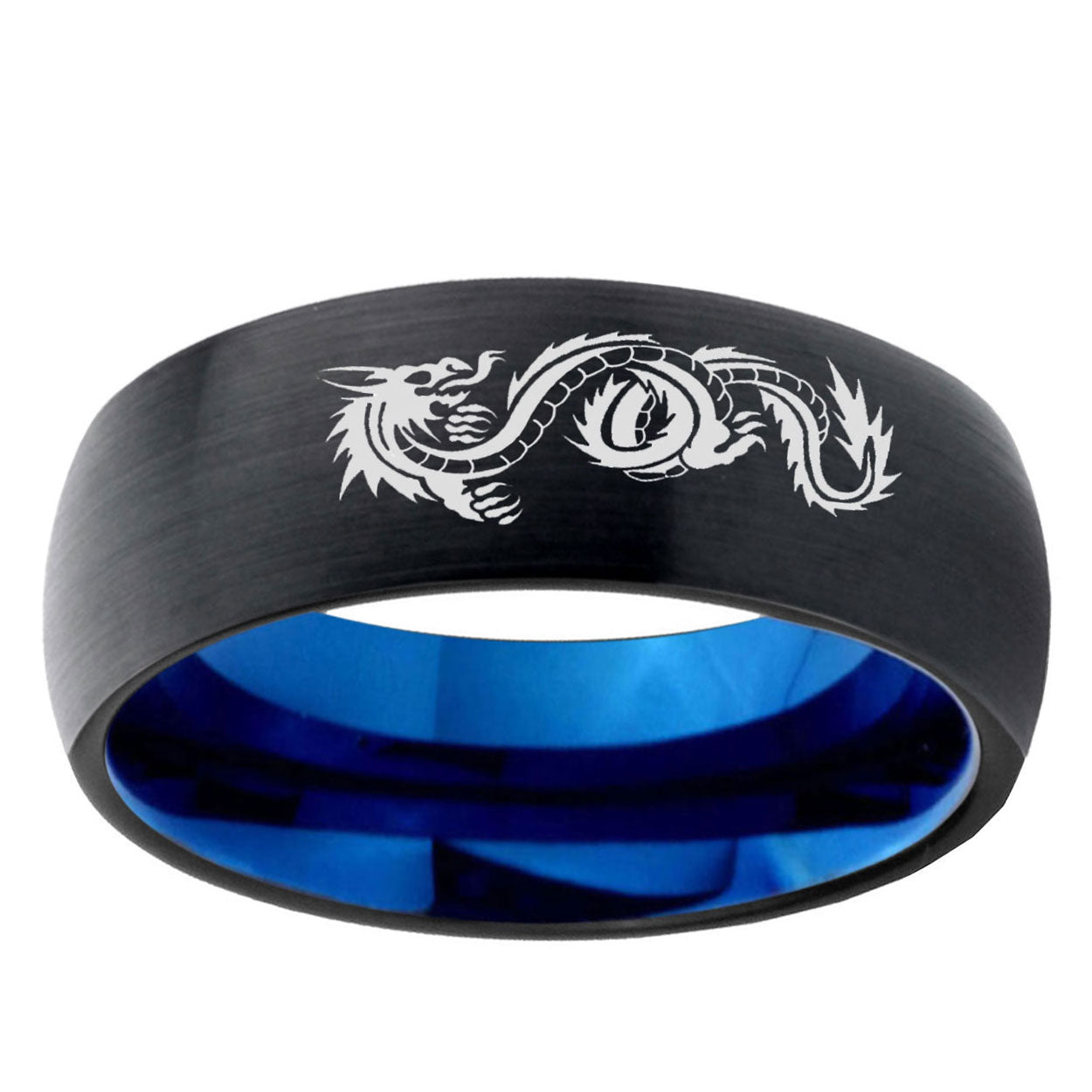 5, 8mm Dragon Dome Black And Blue Tungsten Carbide Engraving Ring
