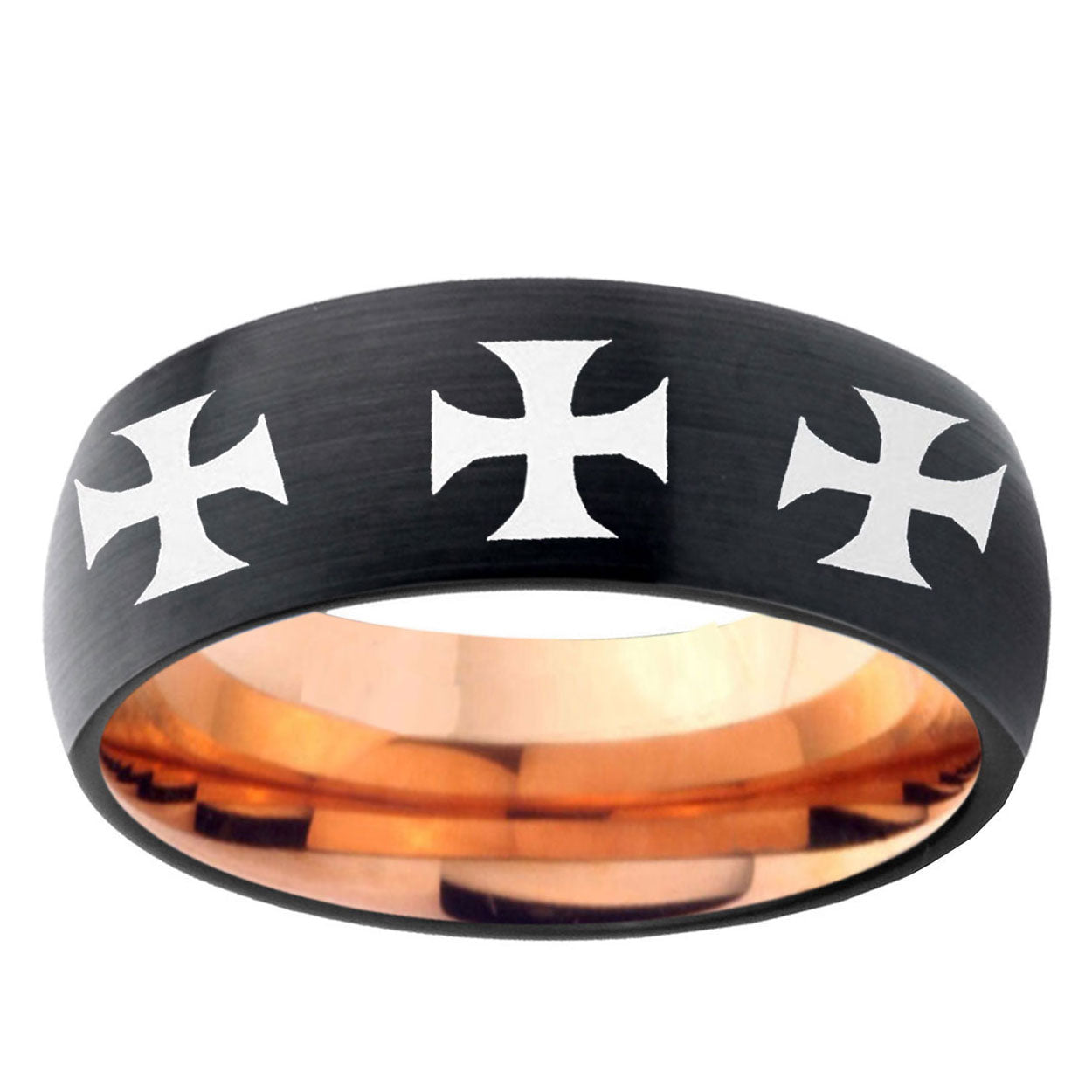 5, 8mm Multiple Maltese Cross Dome Black And Rose Gold Tungsten Carbide Men's Wedding Ring
