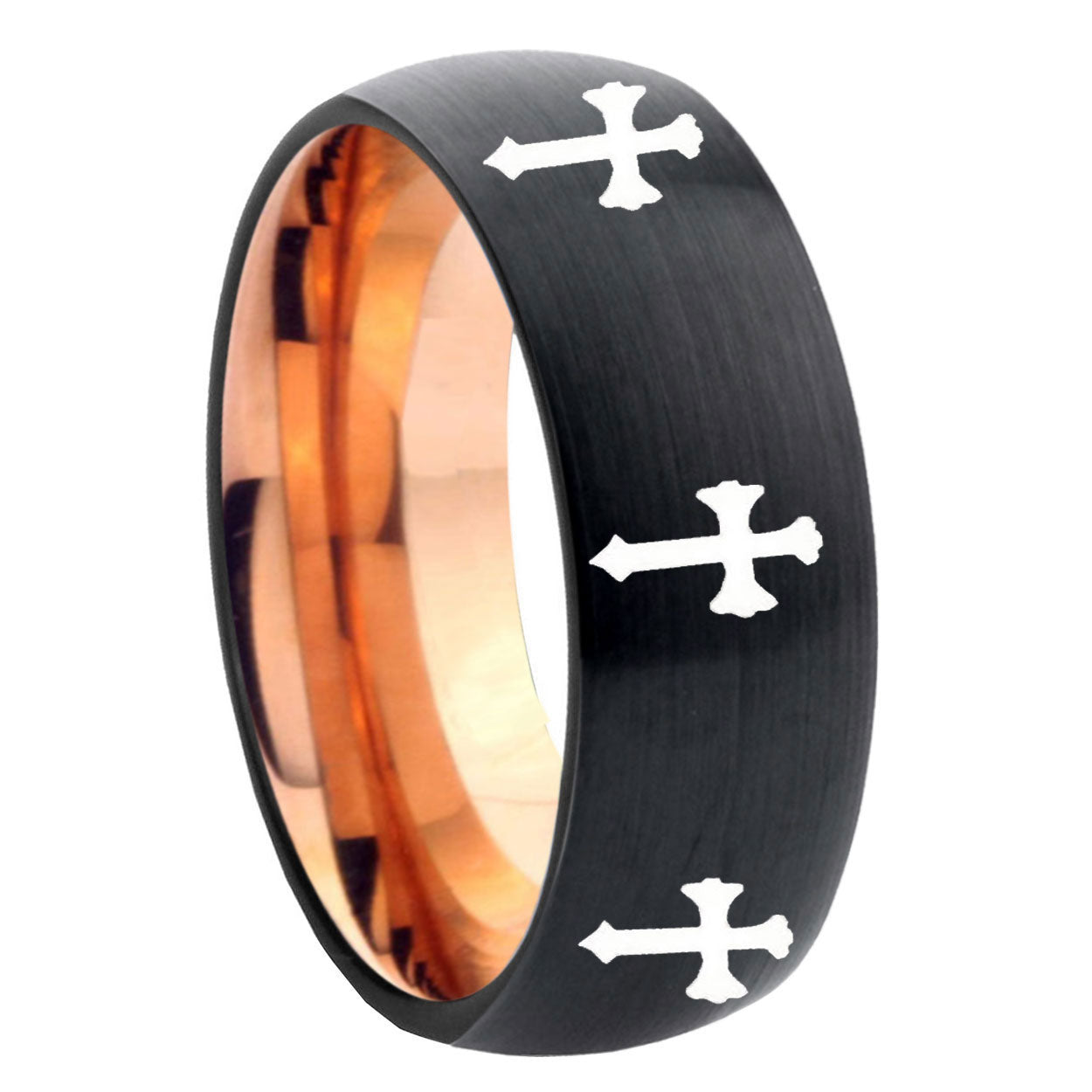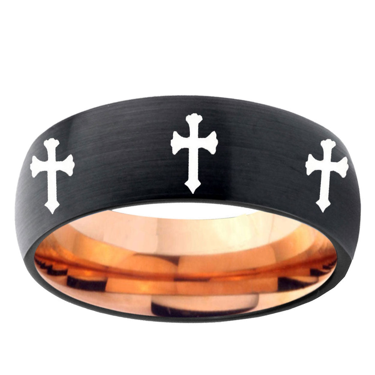 5, 8mm Multiple Christian Cross Dome Black And Rose Gold Tungsten Carbide Personalized Ring