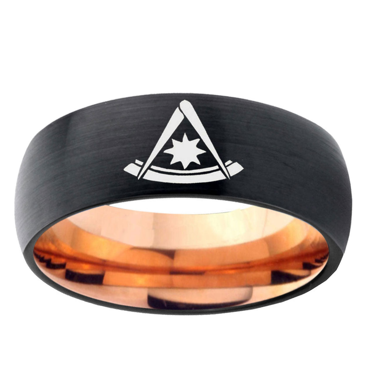 Intruding 5, 8mm Pester Master Masonic Dome Black And Rose Gold Tungsten Carbide Wedding Band Mens . Offer in both 5mm and 8mm band width Black And Rose Gold plated finished from size 4 to 14