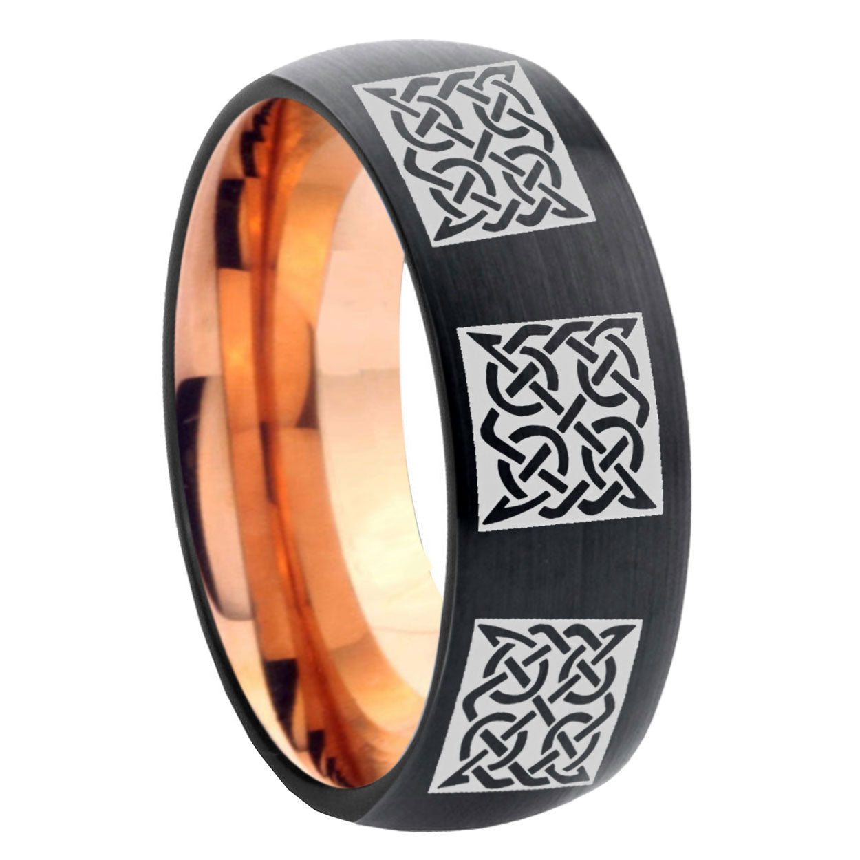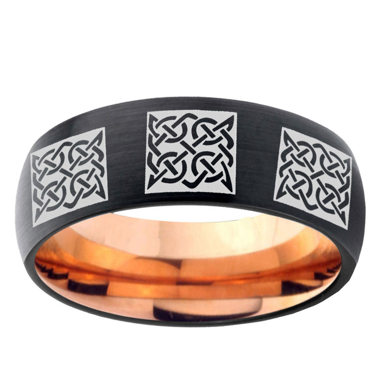 5, 8mm Multiple Celtic Dome Black And Rose Gold Tungsten Carbide Men's Promise Rings