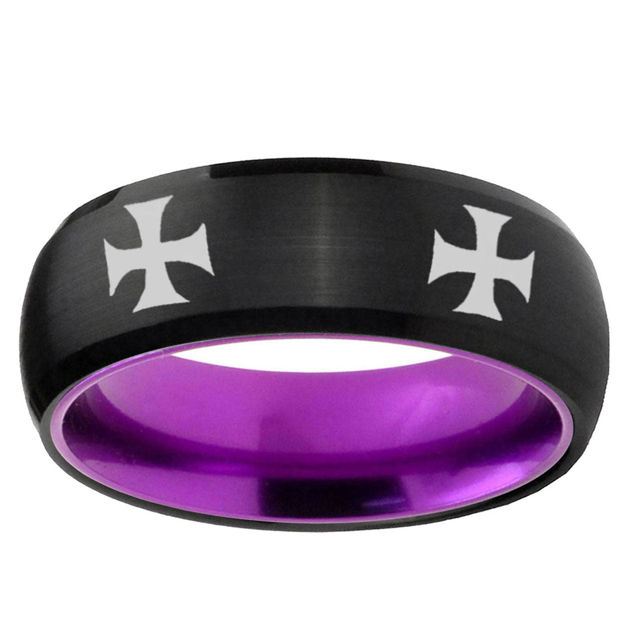 8mm 4 Maltese Cross Dome Black And Purple Tungsten Carbide Bands Ring