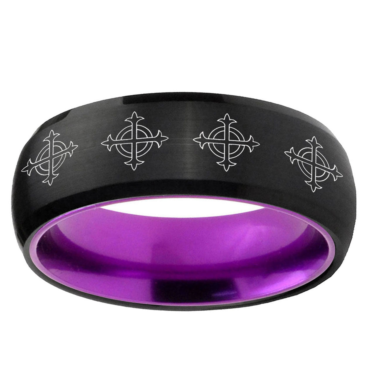 8mm Multiple Crosses Dome Black And Purple Tungsten Carbide Men's Wedding Band