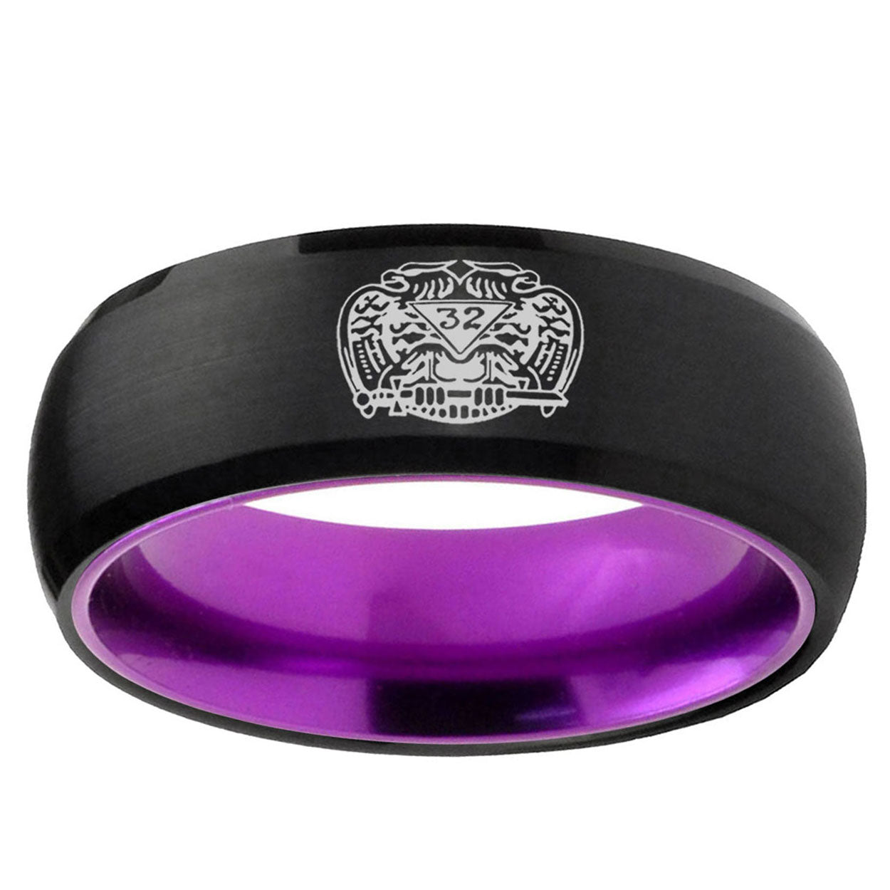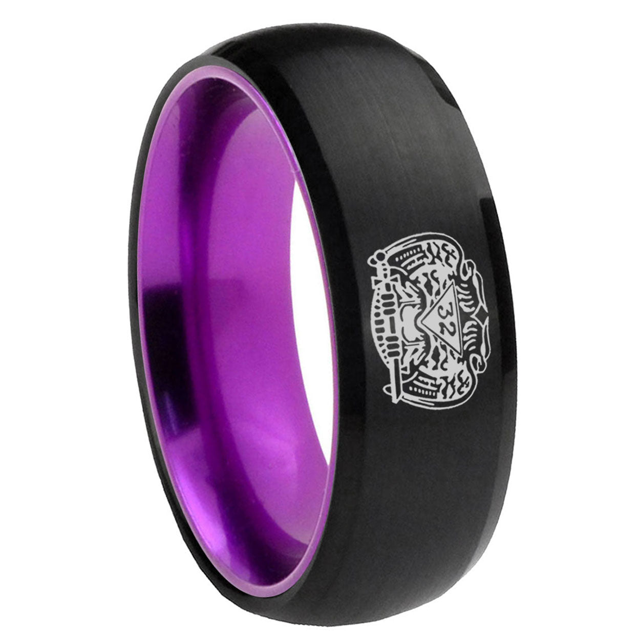 8mm Masonic 32 Degree Freemason Dome Black And Purple Tungsten Carbide Custom Men's Ring