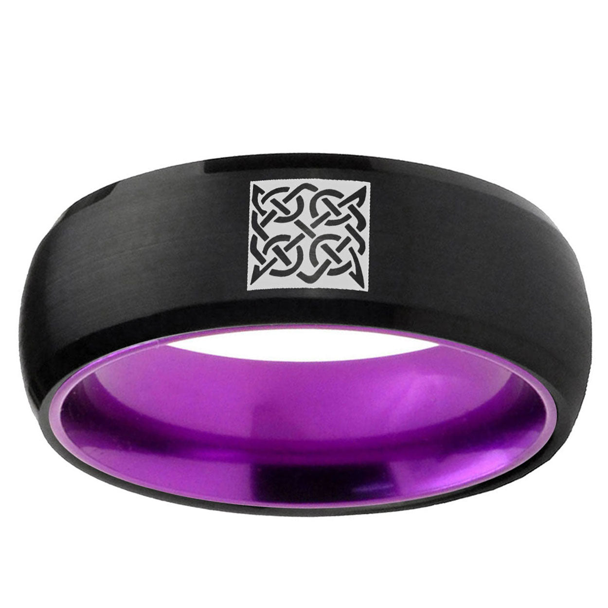 Intruding 8mm Celtic Design Dome Black And Purple Tungsten Carbide Personalized Ring . Offer in men wedding band in 8mm band width Black And Purple plated finished from size 7 to 14