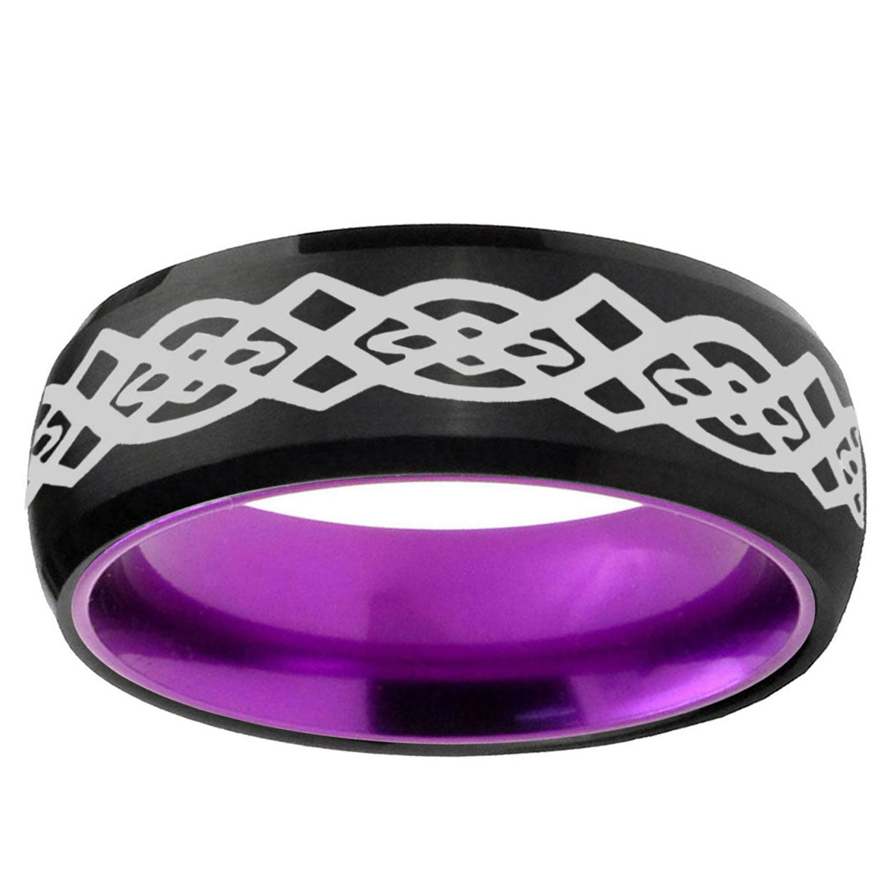 Intruding 8mm Celtic Knot Dome Black And Purple Tungsten Carbide Wedding Band Mens . Offer in men wedding band in 8mm band width Black And Purple plated finished from size 7 to 14