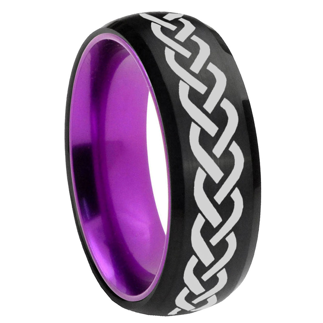 Intruding 8mm Laser Celtic Knot Dome Black And Purple Tungsten Carbide Men's Wedding Ring . Offer in men wedding band in 8mm band width Black And Purple plated finished from size 7 to 14