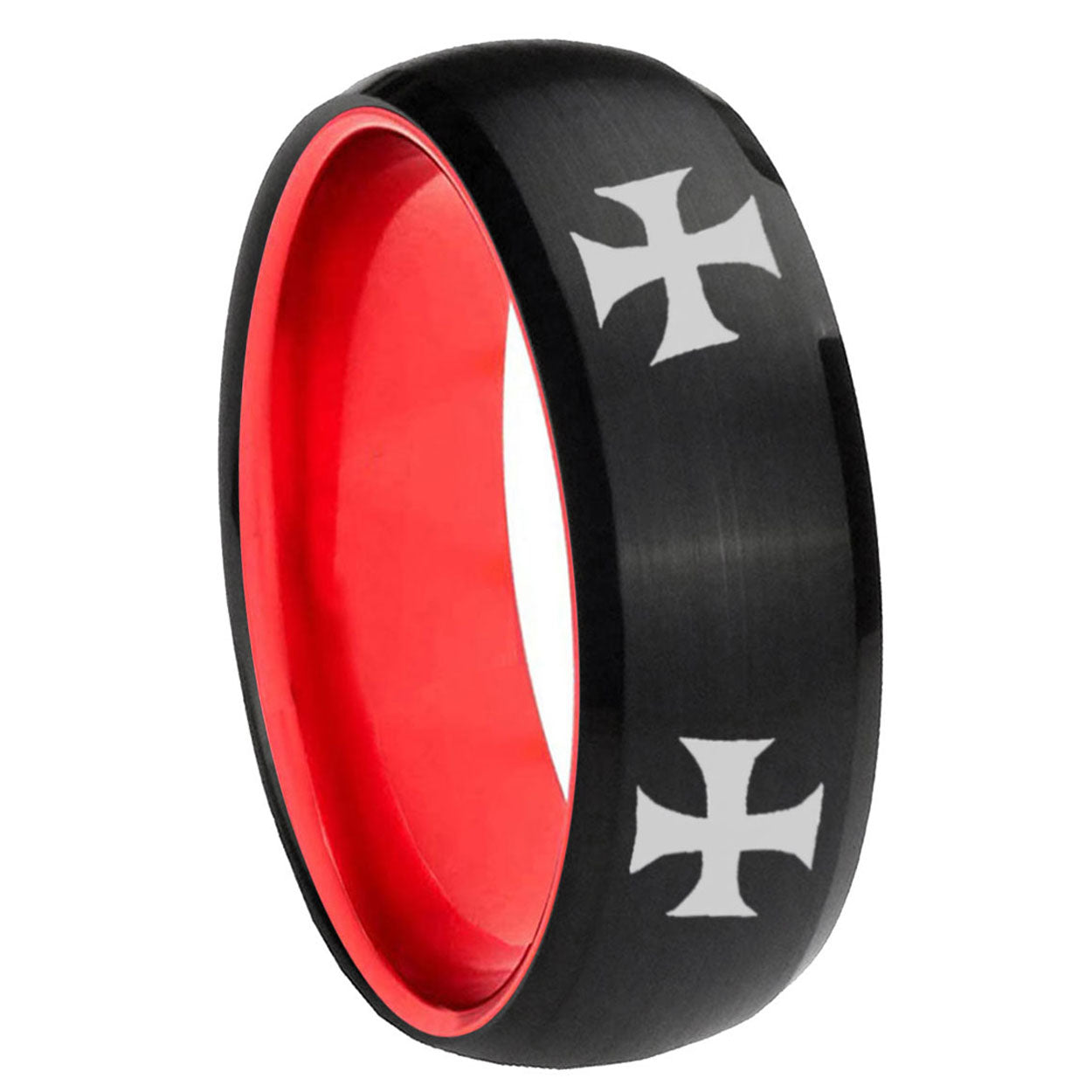 8mm 4 Maltese Cross Dome Black And Red Tungsten Carbide Bands Ring