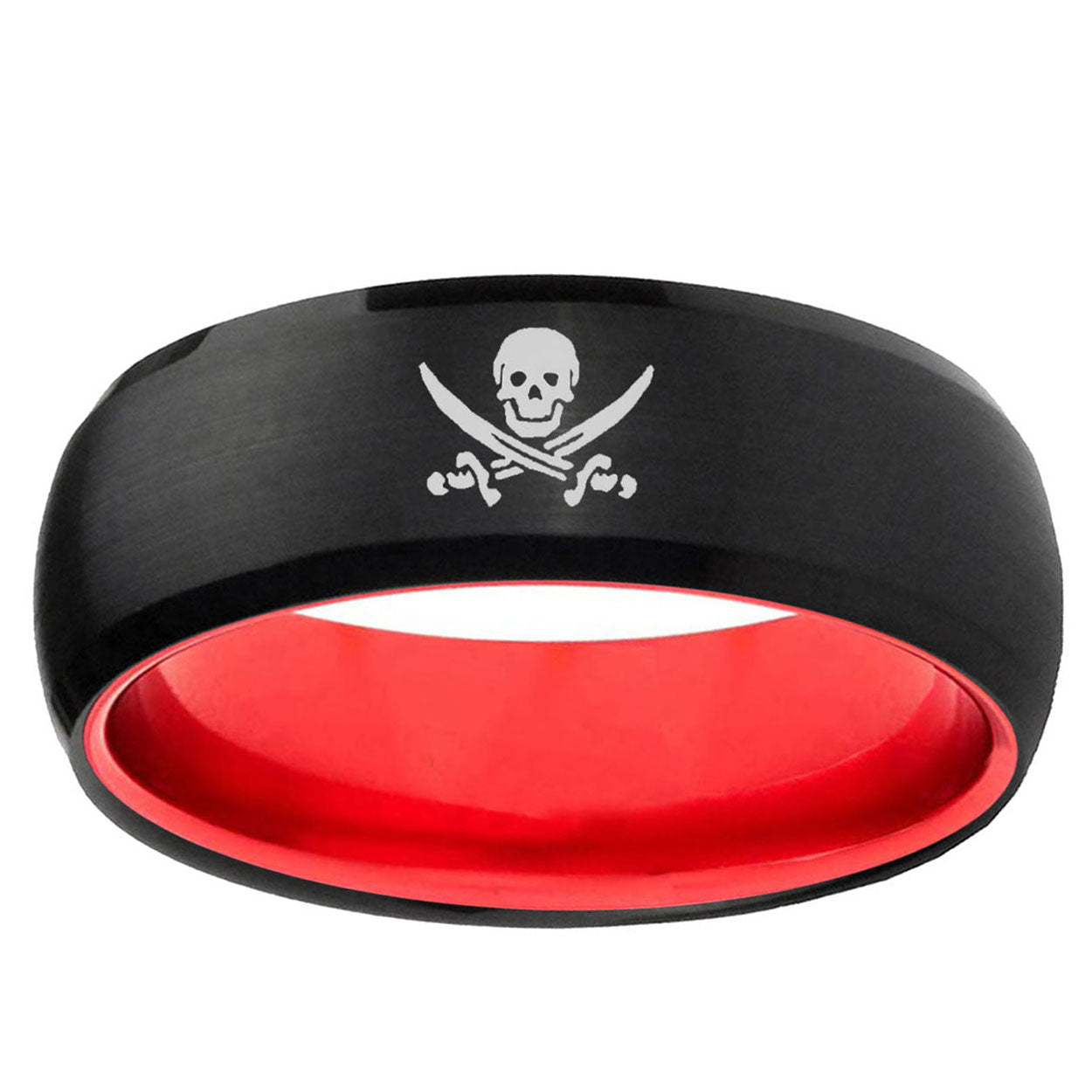 8mm Skull Pirate Dome Black And Red Tungsten Carbide Men's Wedding Ring