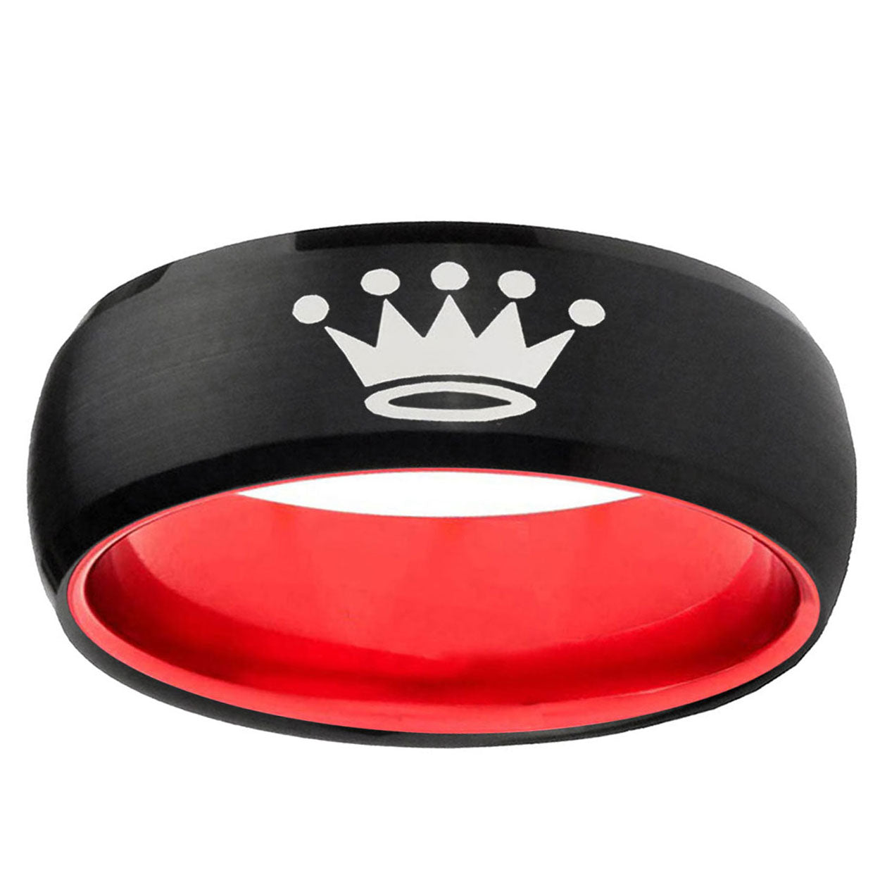 8mm Crown Dome Black And Red Tungsten Carbide Men's Wedding Ring