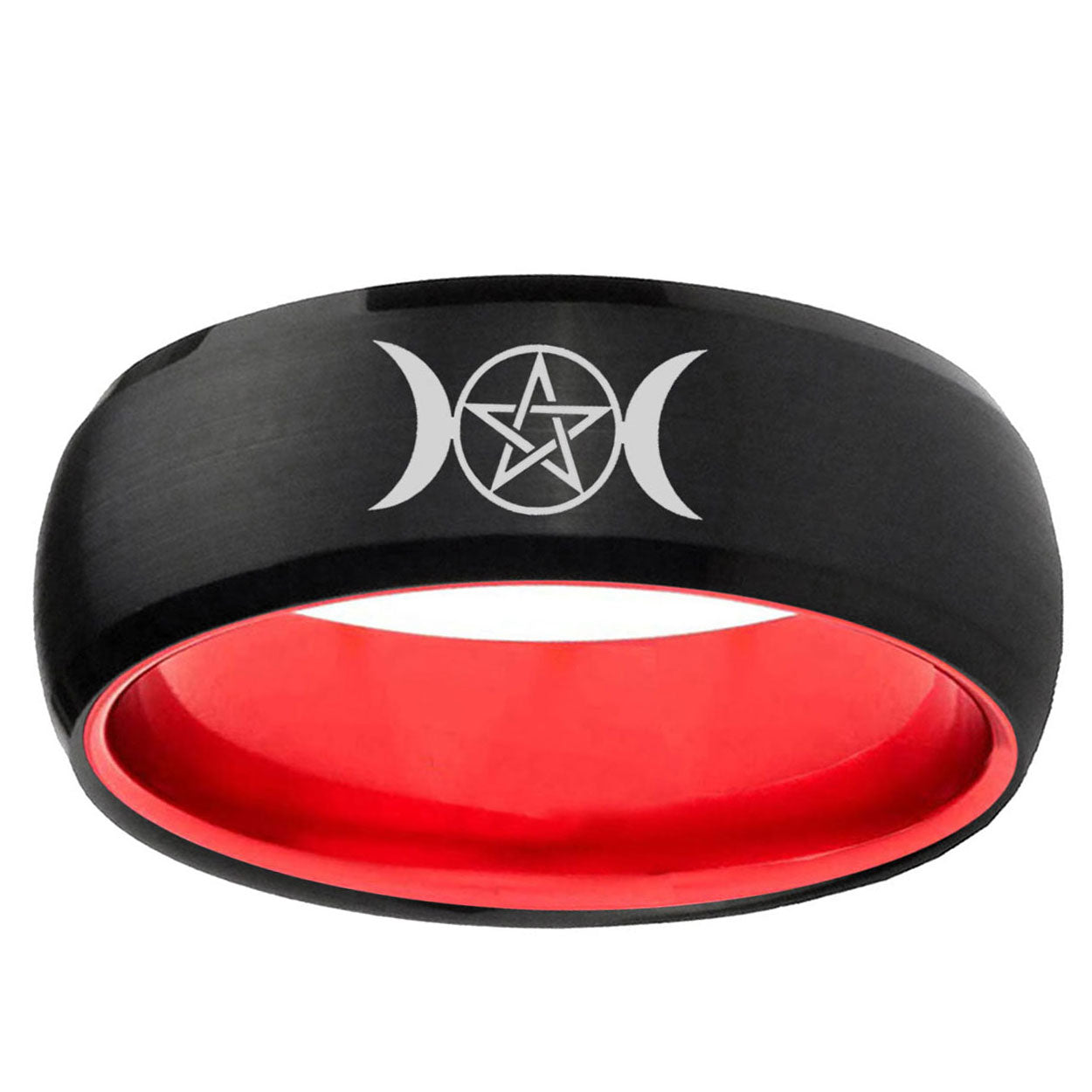 Intruding 8mm Triple Moon Dome Black And Red Tungsten Carbide Men's Wedding Ring . Offer in men wedding band in 8mm band width Black And Red plated finished from size 7 to 14