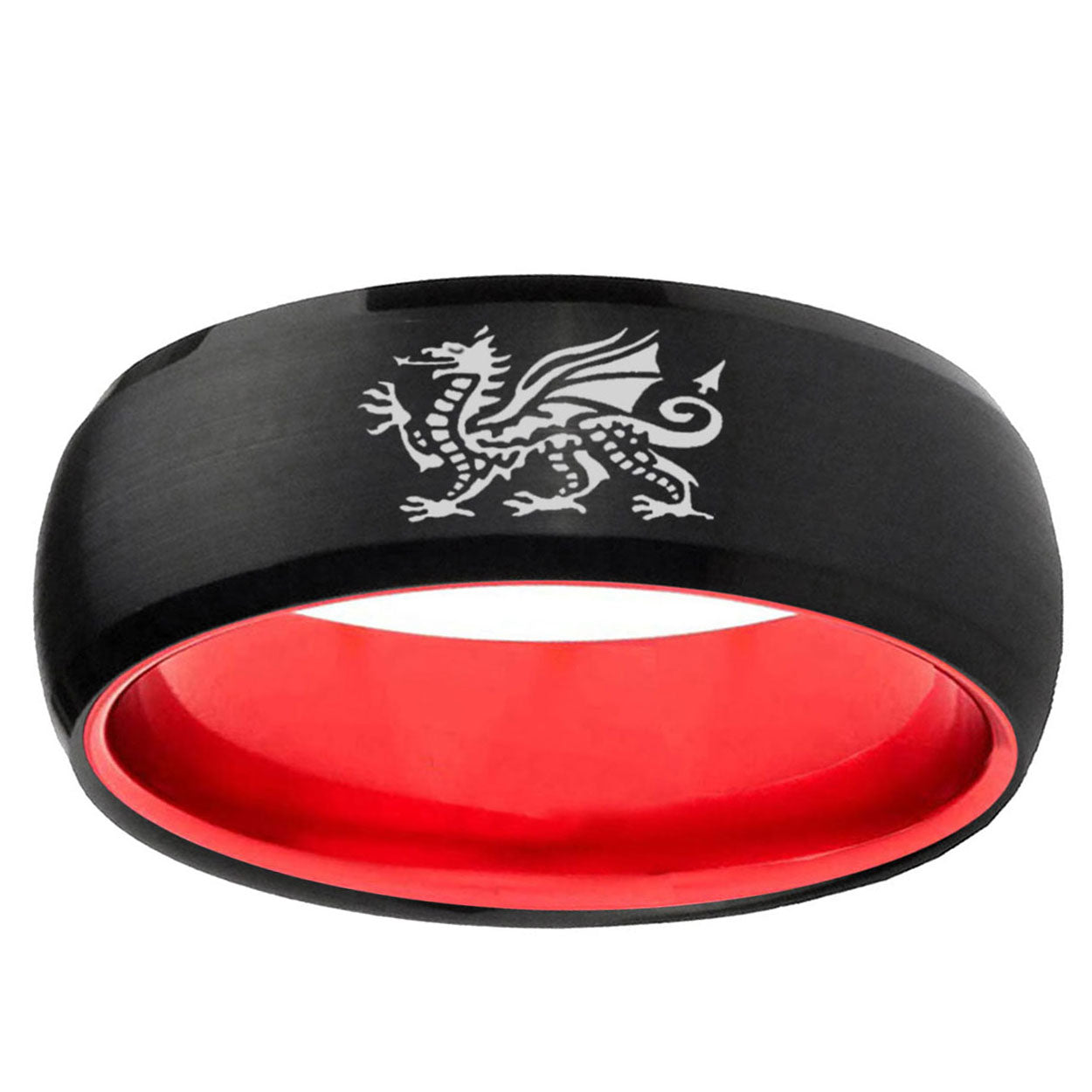 Intruding 8mm Dragon Dome Black And Red Tungsten Carbide Rings for Men . Offer in men wedding band in 8mm band width Black And Red plated finished from size 7 to 14