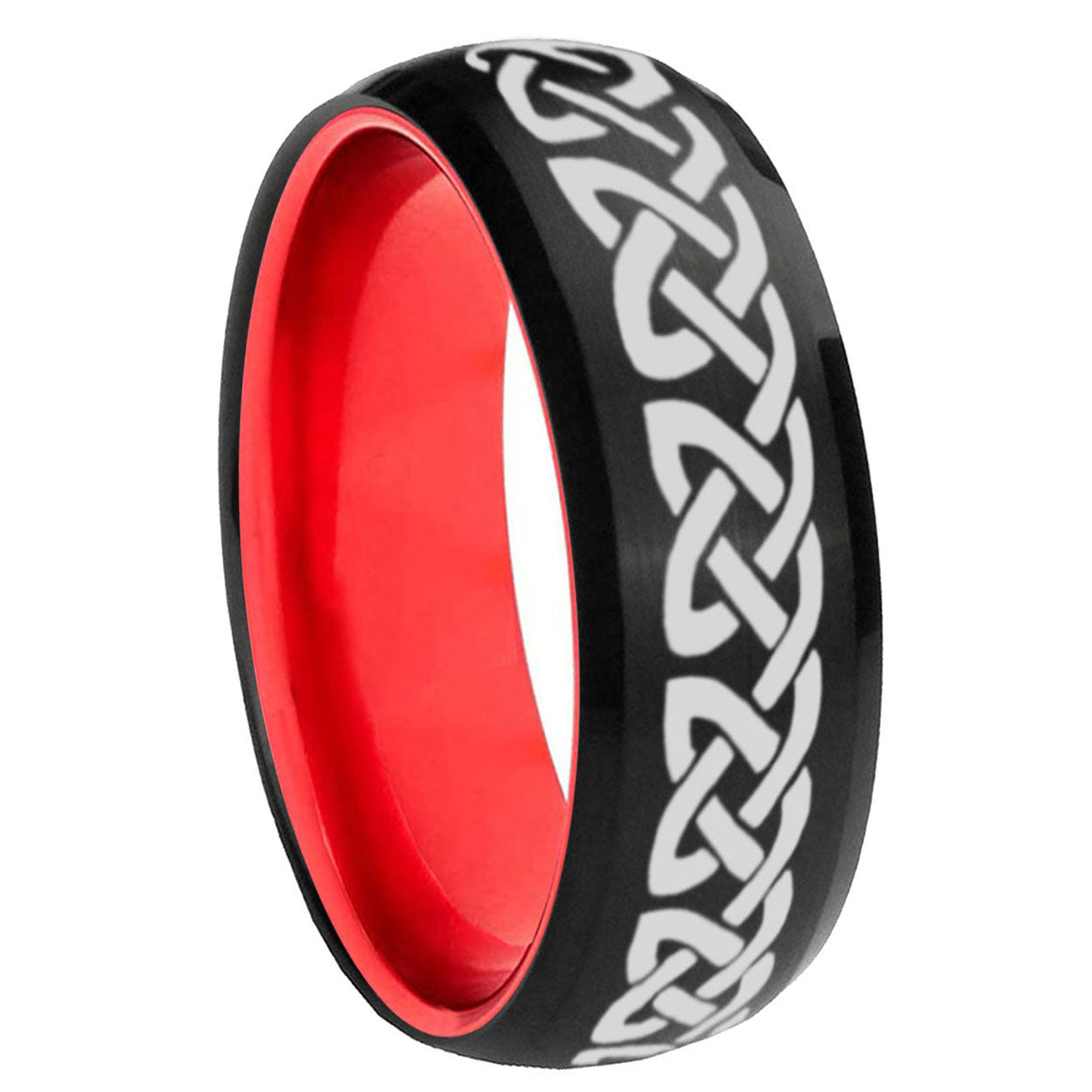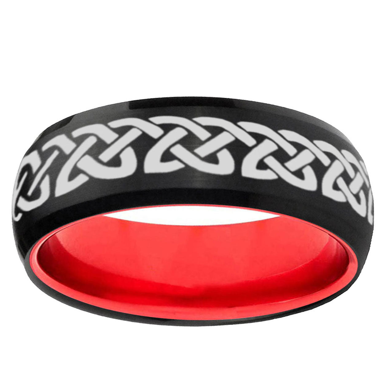 Intruding 8mm Celtic Knot Love Dome Black And Red Tungsten Carbide Men's Wedding Ring . Offer in men wedding band in 8mm band width Black And Red plated finished from size 7 to 14