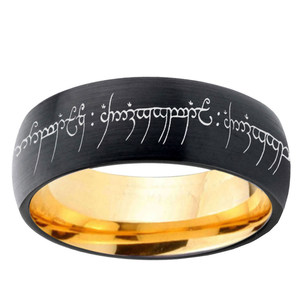 Intruding 8mm Lord Of The Rings Dome Gold Black Cool Wedding Rings Men . Offer in 8mm band width black and gold plated finished from size 7 to 14