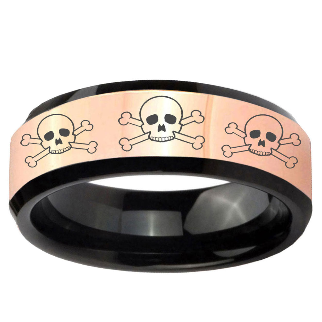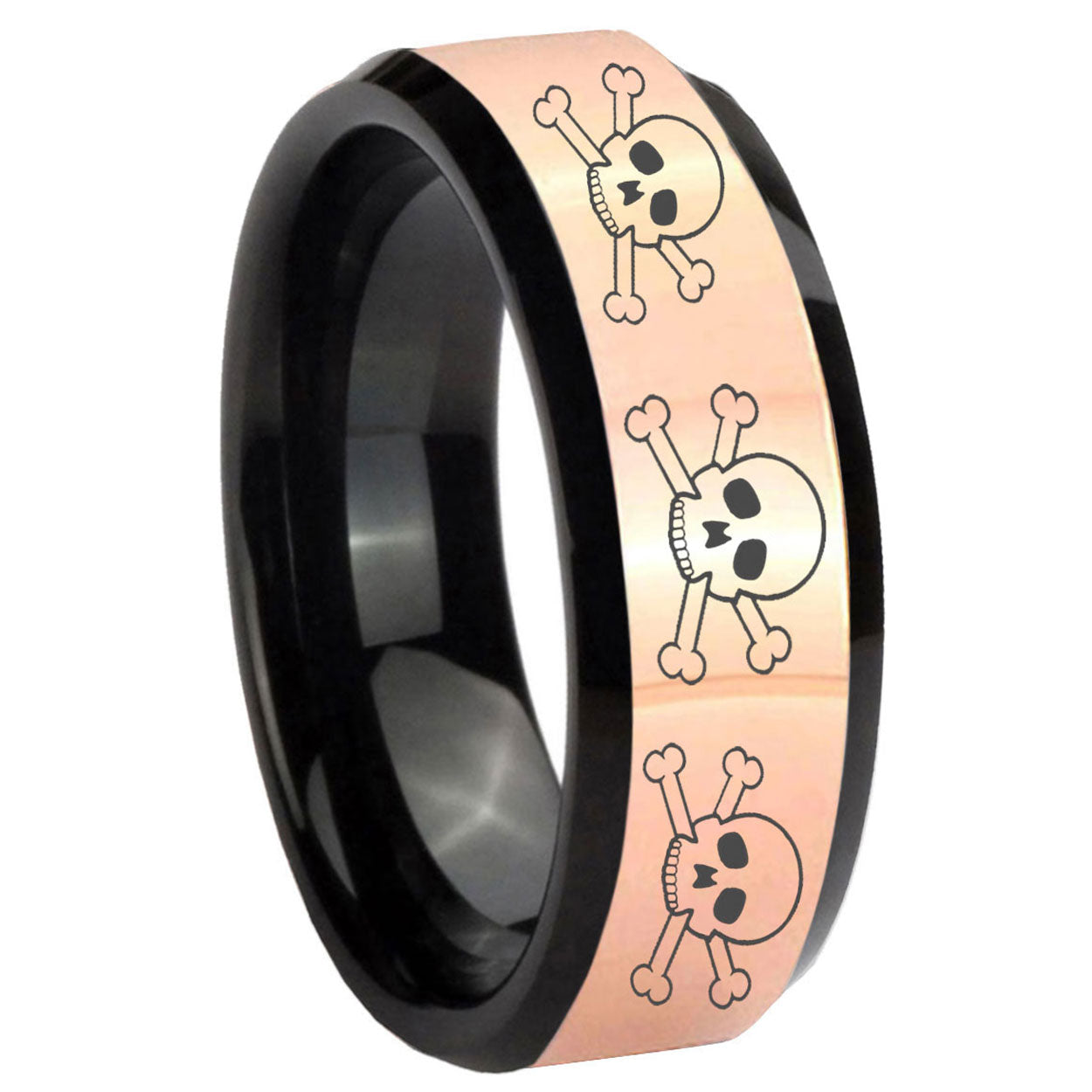 8mm Multiple Skull Rose Gold And Black Beveled Edge Tungsten Carbide Men's Wedding Ring