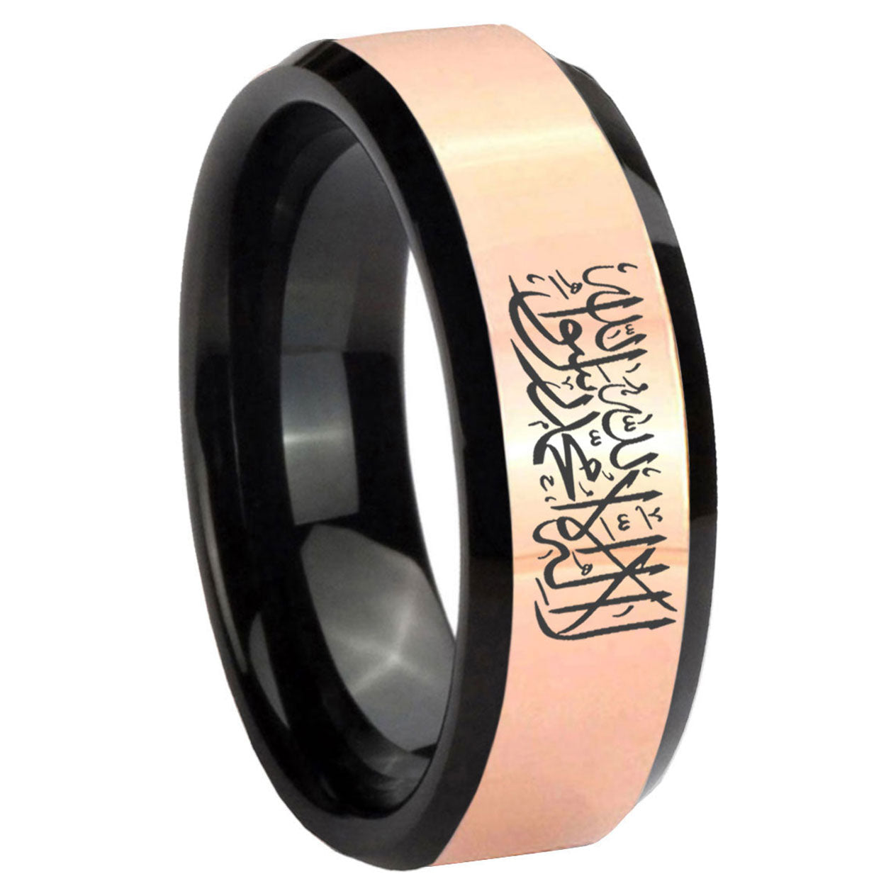 8mm Islamic Shahada Rose Gold And Black Beveled Edge Tungsten Carbide Men's Ring