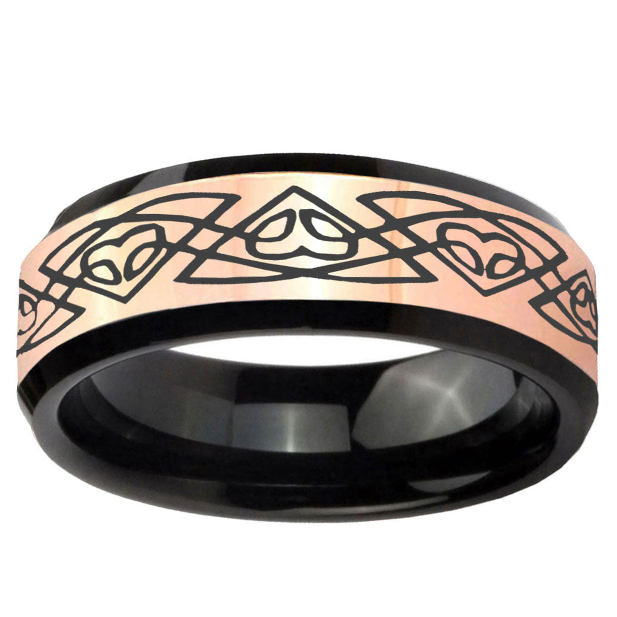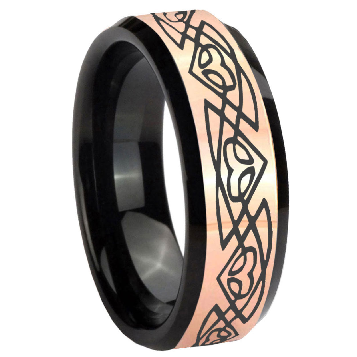 8mm Celtic Braided Rose Gold And Black Beveled Edge Tungsten Carbide Men's Wedding Ring