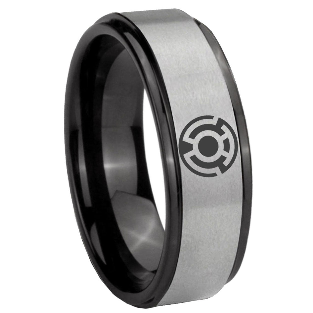 Intruding 6, 8mm Yellow Lantern Black Step Edge Gray Mens Steel Wedding Bands . Offer in both 6mm and 8mm band width brushed black plated finished from size 7 to 14