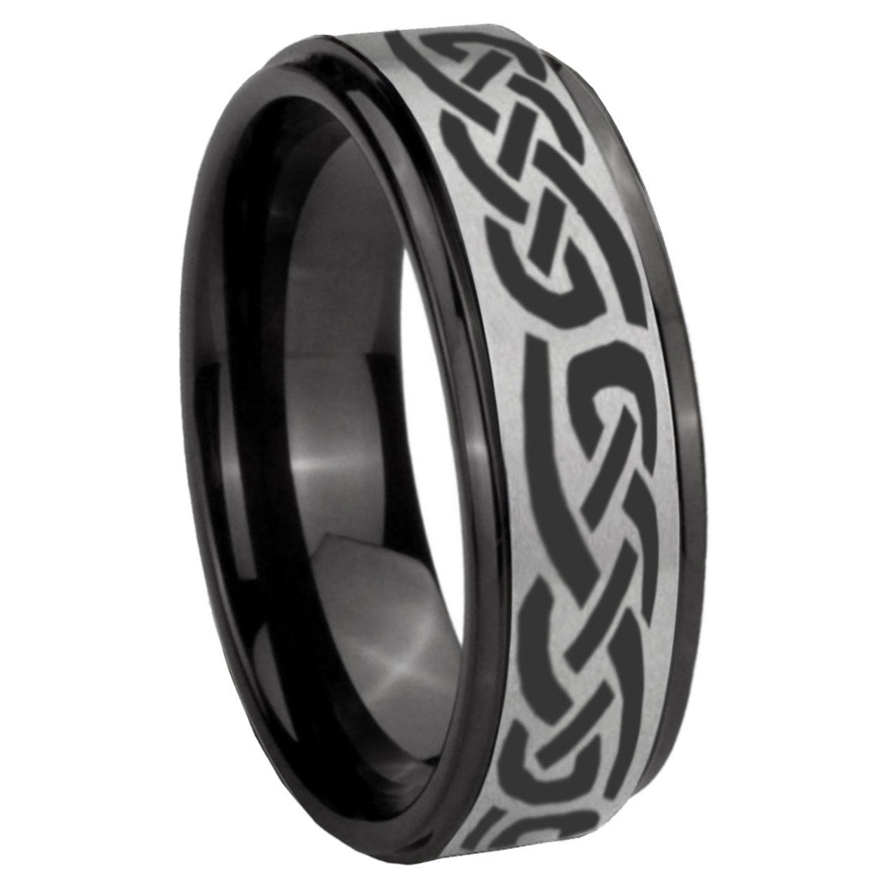 Intruding 6, 8mm Celtic Knot Infinity Love Black Step Edge Gray Tungsten Carbide Men's Wedding Ring . Offer in both 6mm and 8mm band width Black And Gray plated finished from size 7 to 14