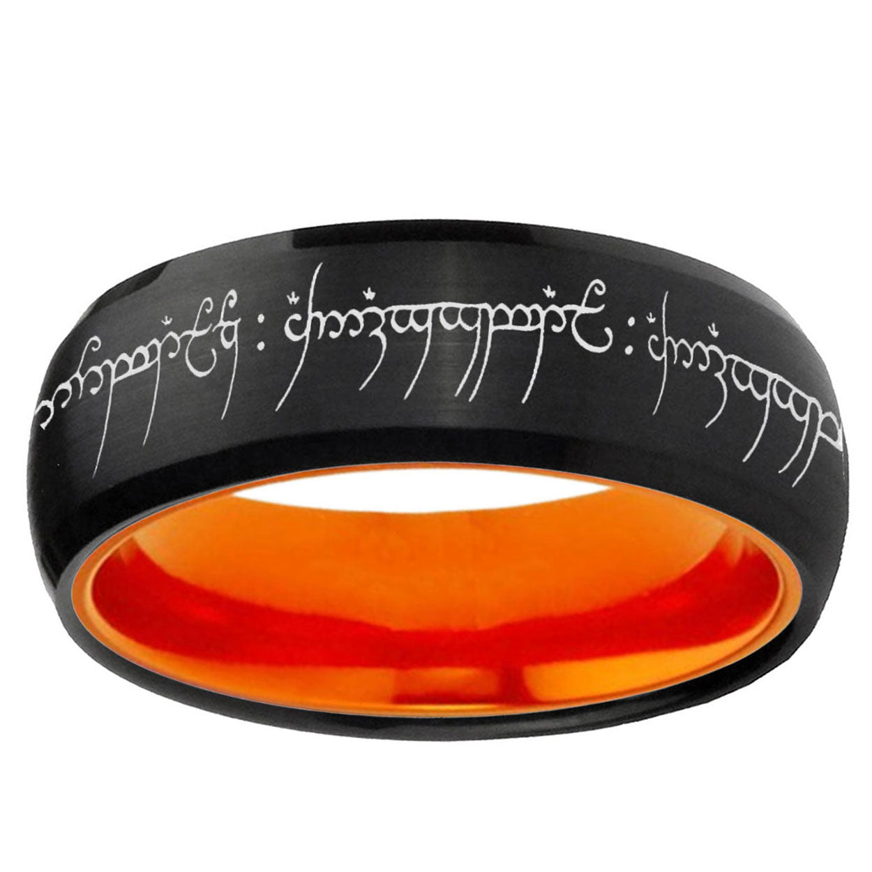Intruding 8mm Lord Of The Rings Dome Black Orange Mens Tungsten Jewelry . Offer in 8mm band width black and orange finished from size 7 to 14