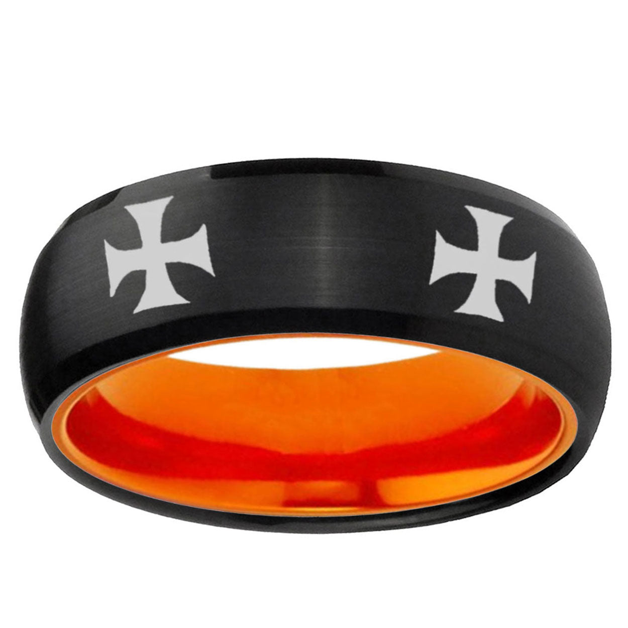 8mm 4 Maltese Cross Dome Black And Orange Tungsten Carbide Bands Ring