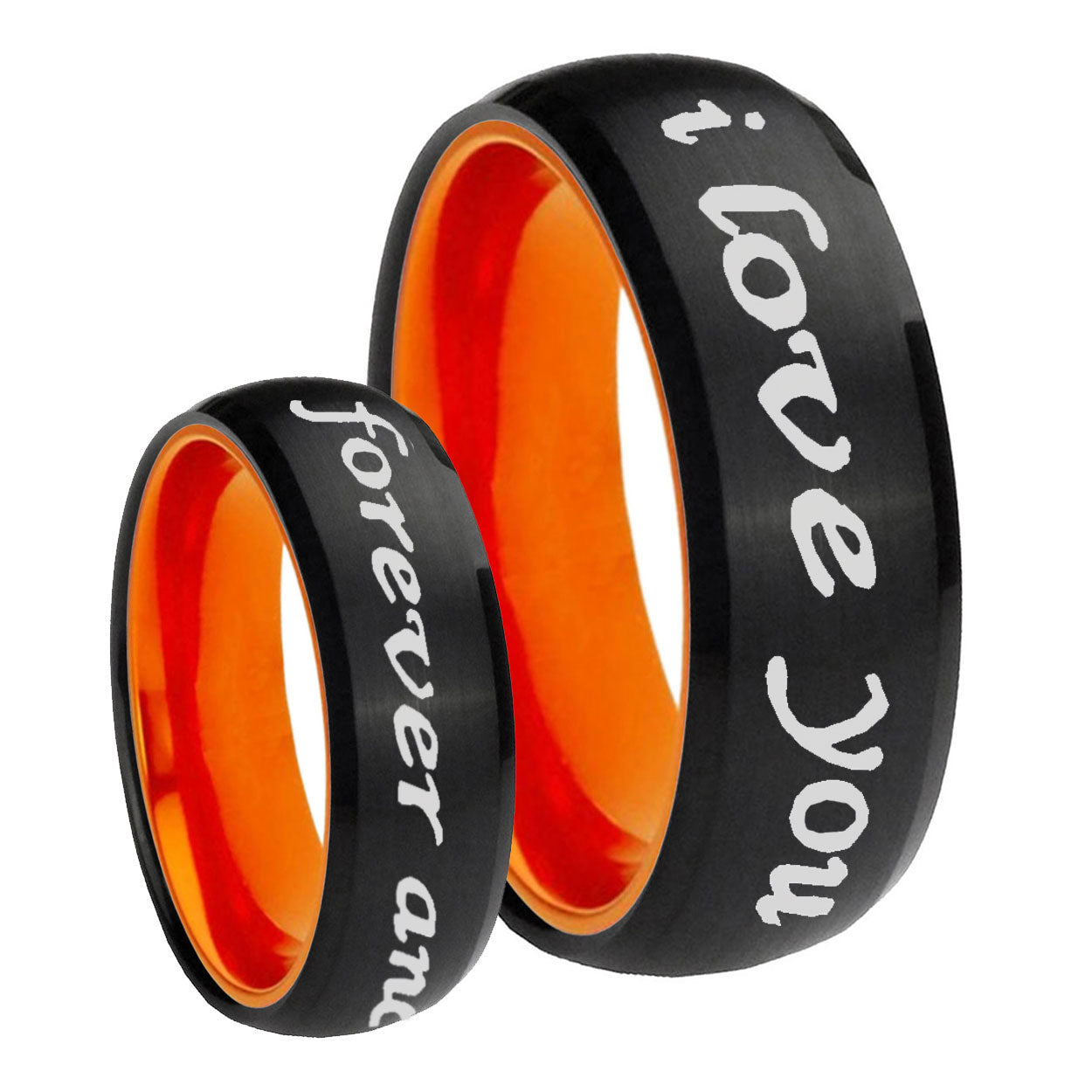 Intruding 8mm I Love You Forever and ever Dome Black And Orange Tungsten Men's Ring . Offer in men wedding band in 8mm band width Black And Orange plated finished from size 7 to 14