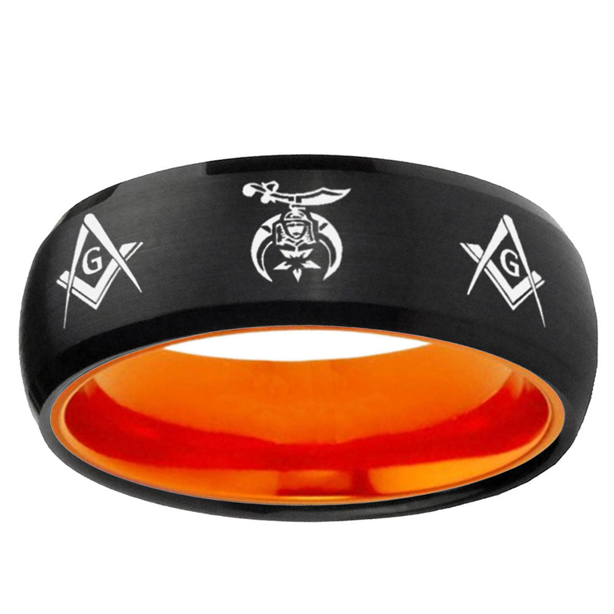 Intruding 8mm Masonic Shriners Dome Black And Orange Tungsten Carbide Men's Wedding Band . Offer in men wedding band in 8mm band width Black And Orange plated finished from size 7 to 14