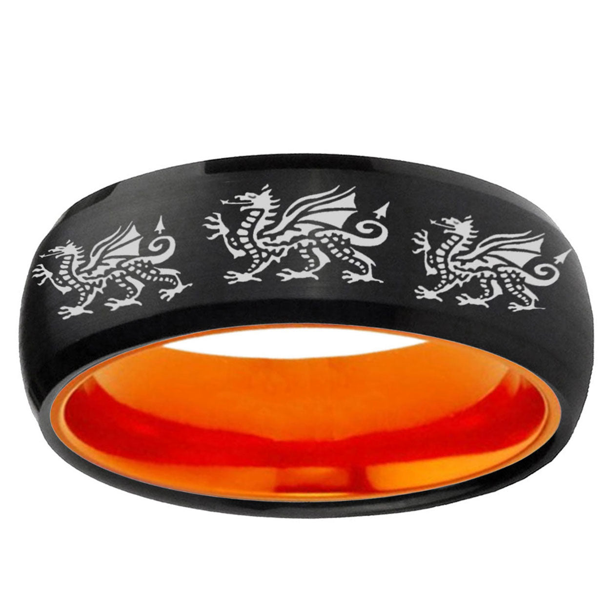 8mm Multiple Dragon Dome Black And Orange Tungsten Carbide Men's Wedding Ring