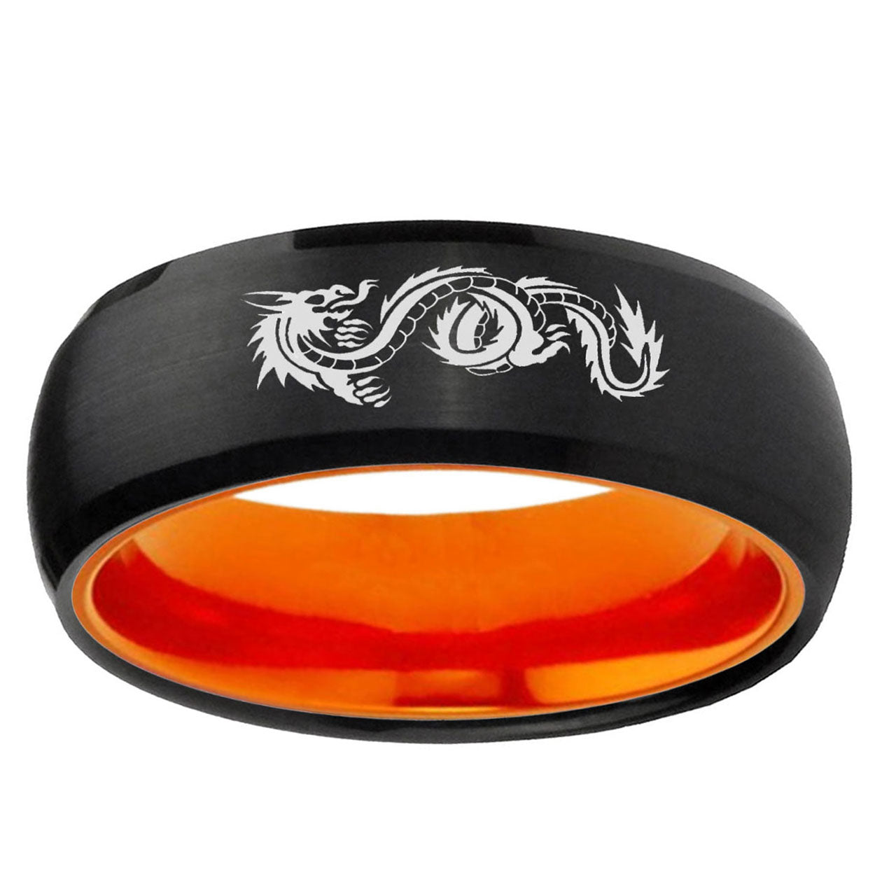8mm Dragon Dome Black And Orange Tungsten Carbide Wedding Engraving Ring