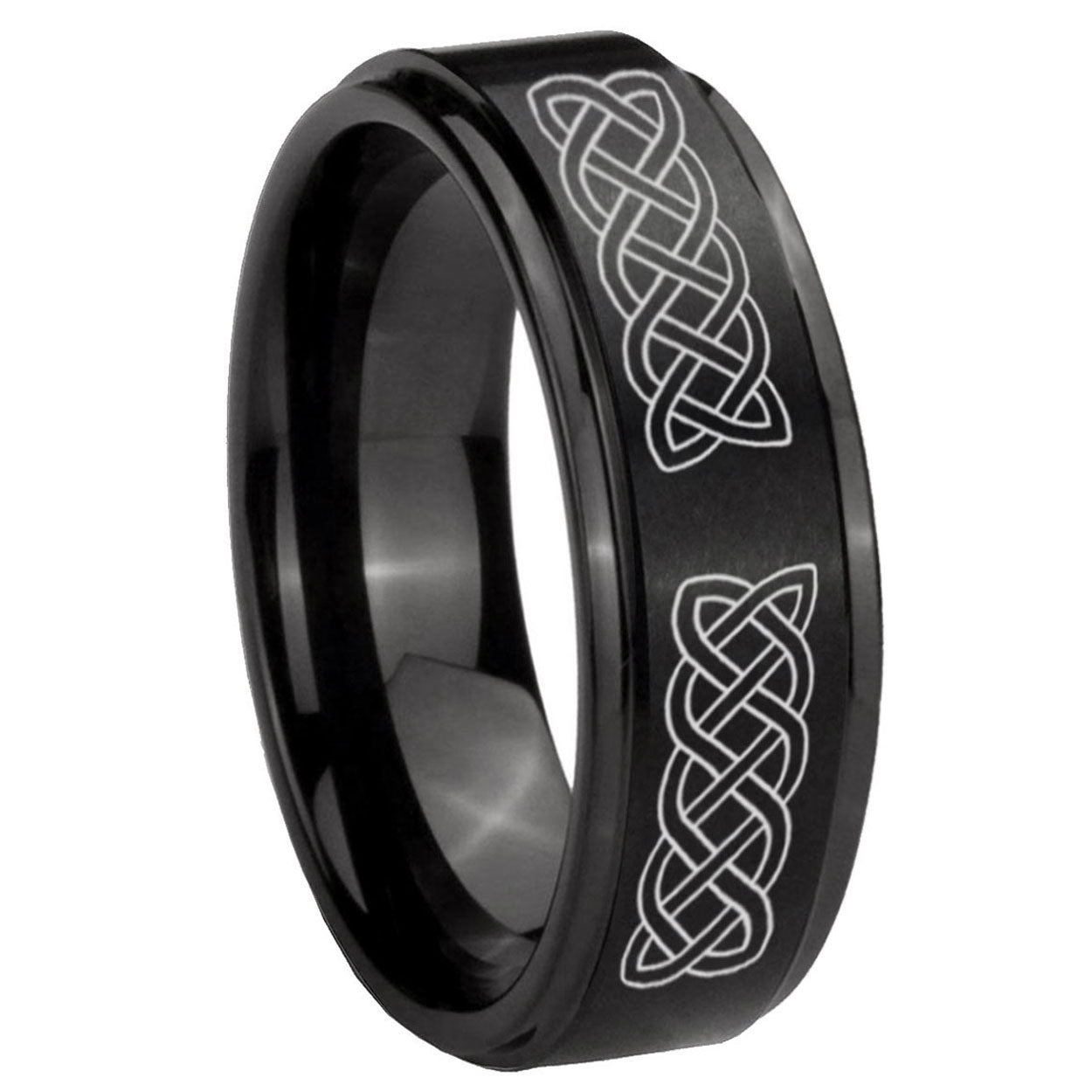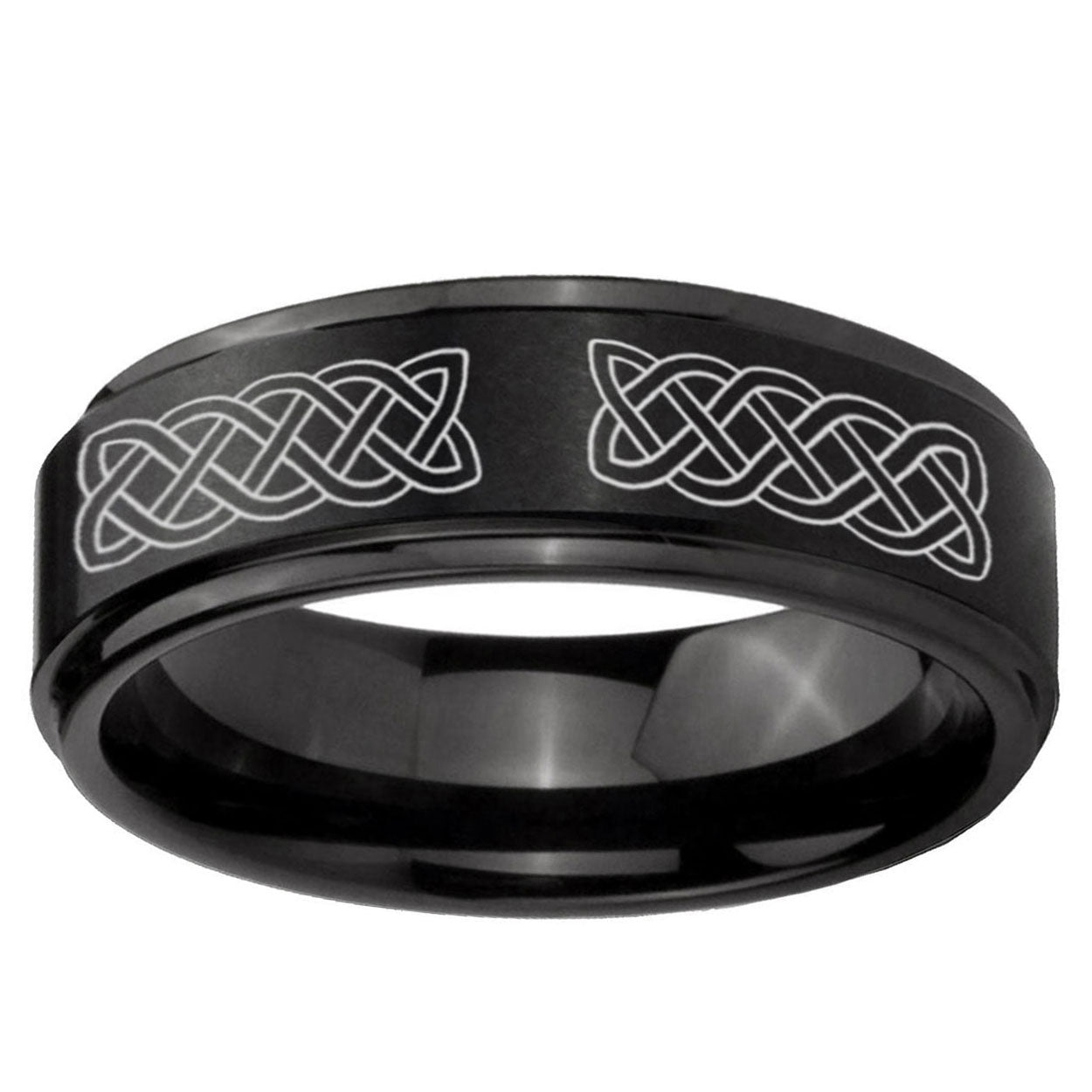 10mm Celtic Knot Step Edges Brush Black Tungsten Carbide Mens Promise Ring