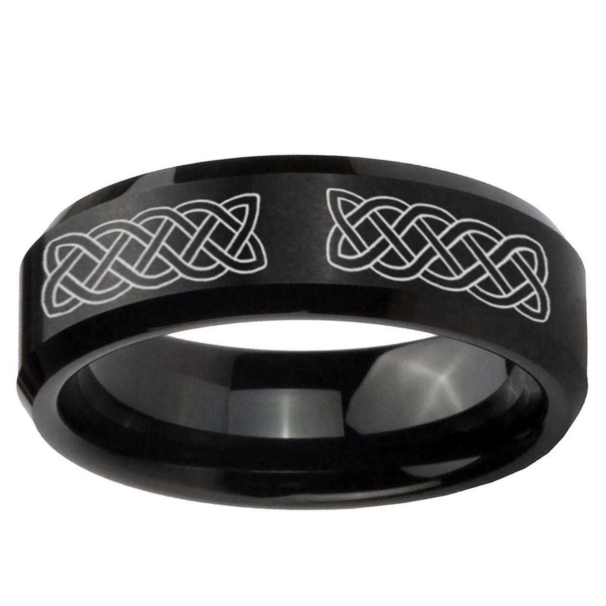 Intruding 5, 8mm Celtic Knot Beveled Edges Brush Black Tungsten Men's Engagement Band . Offer in both 5mm and 8mm band width brushed black plated finished from size 4 to 14