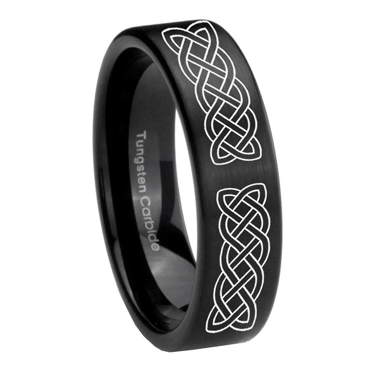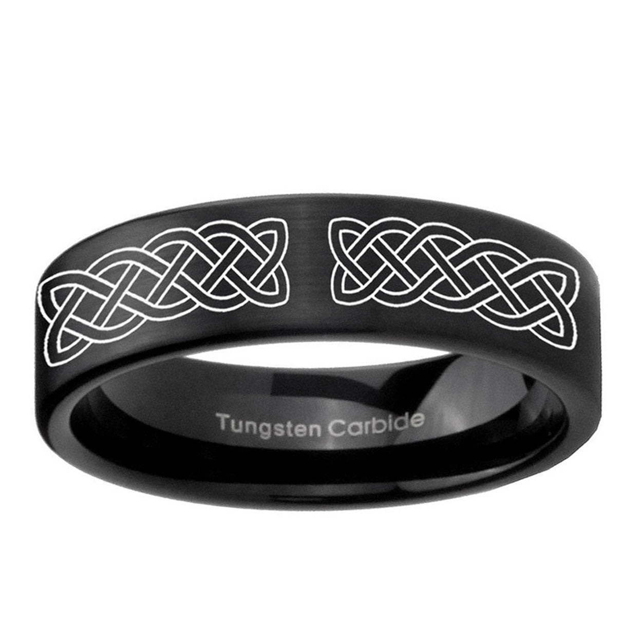 Intruding 6, 8mm Celtic Knot Pipe Cut Brush Black Tungsten Carbide Custom Mens Ring . Offer in both 6mm and 8mm band width brushed black plated finished from size 5 to 14