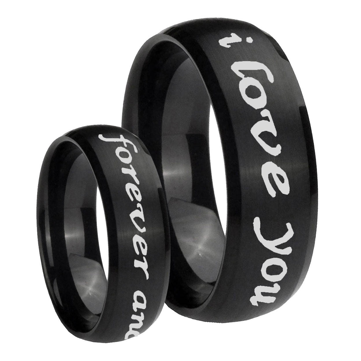 Style the 10mm I Love You Forever and ever Dome Brush Black Tungsten Rings for Men. This brushed black dome ring with I Love You Forever design is perfect for men.