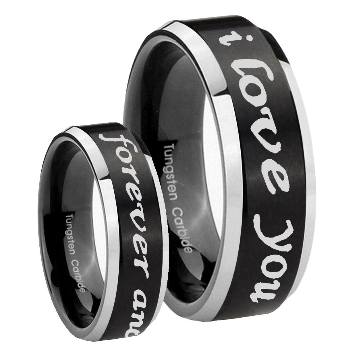 5, 8mm I Love You Forever and ever Beveled Brush Black 2 Tone Tungsten Men's Ring