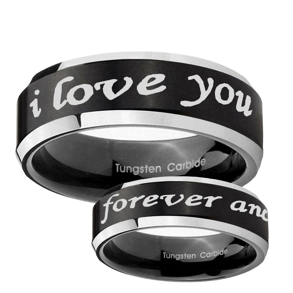 Intruding 5, 8mm I Love You Forever and ever Beveled Brush Black 2 Tone Tungsten Men's Ring . Offer in both 5mm and 8mm band width brushed black plated 2 tone finished from size 4 to 14