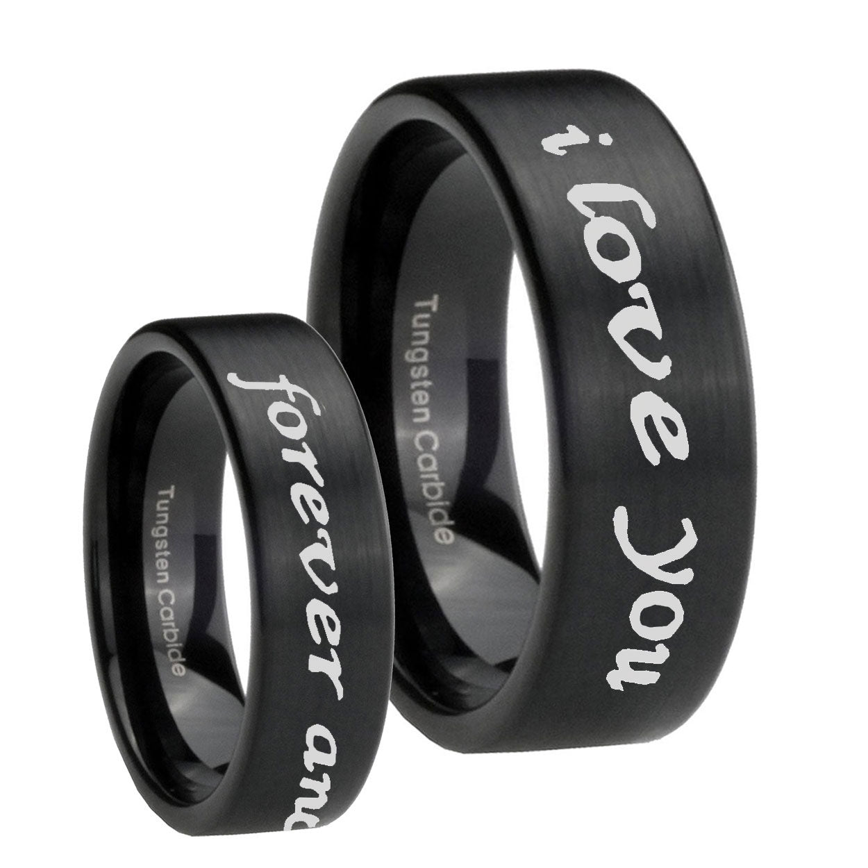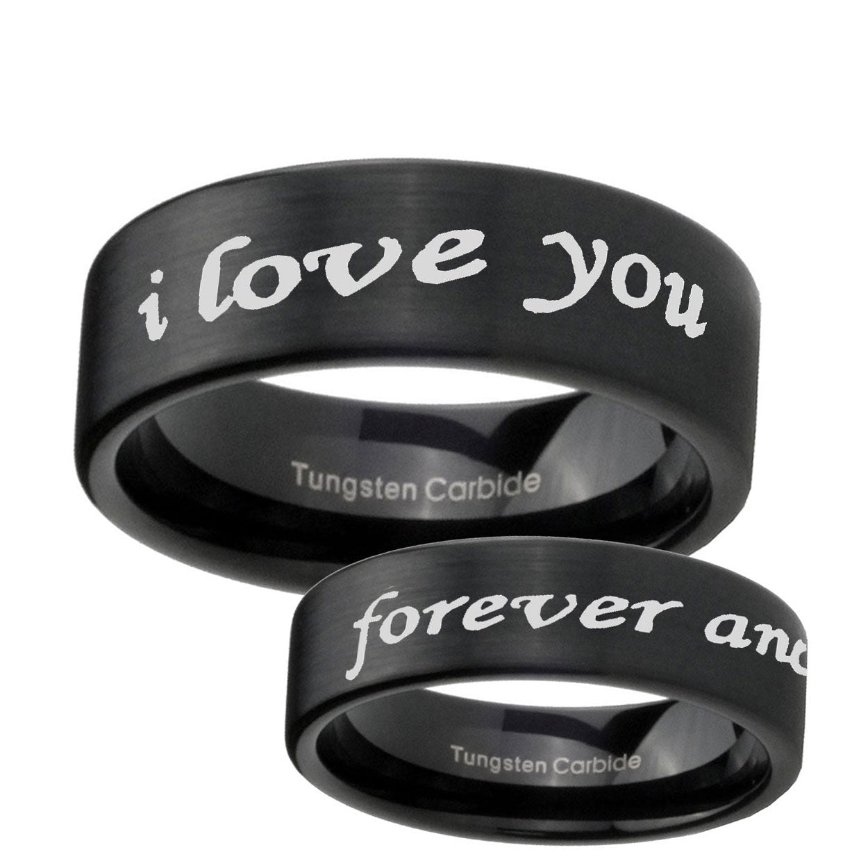 6, 8mm I Love You Forever and ever Pipe Cut Brush Black Tungsten Men's Band Ring