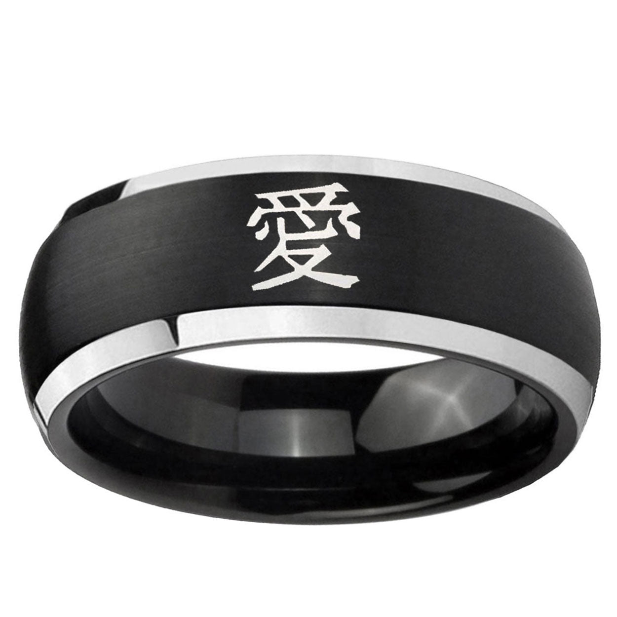 Intruding 5, 8mm Kanji Love Dome Brushed Black 2 Tone Tungsten Carbide Wedding Band Mens . Offer in both 5mm and 8mm band width brushed black plated finished from size 4 to 14