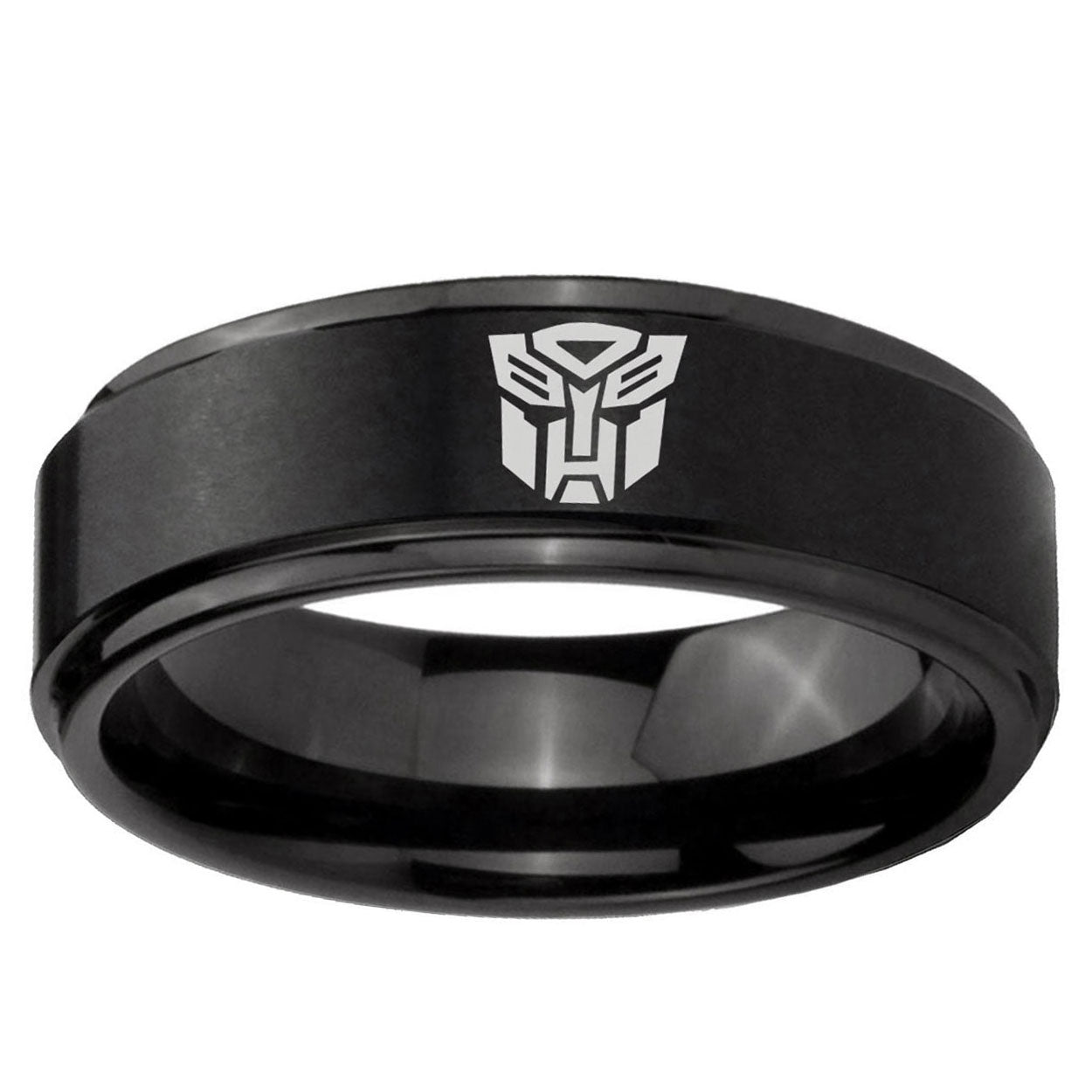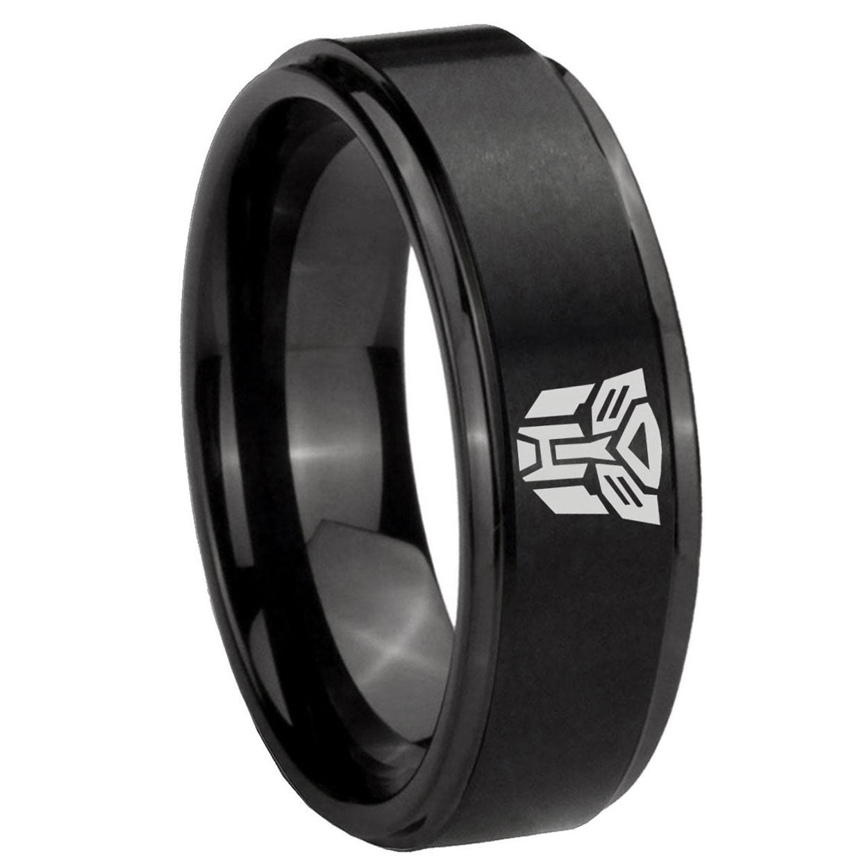 Intruding 5, 8mm Transformers Autobot Step Edges Brush Black Tungsten Mens Ring Personalized . Offer in both 5mm and 8mm band width brush black plated finished from size 4 to 14