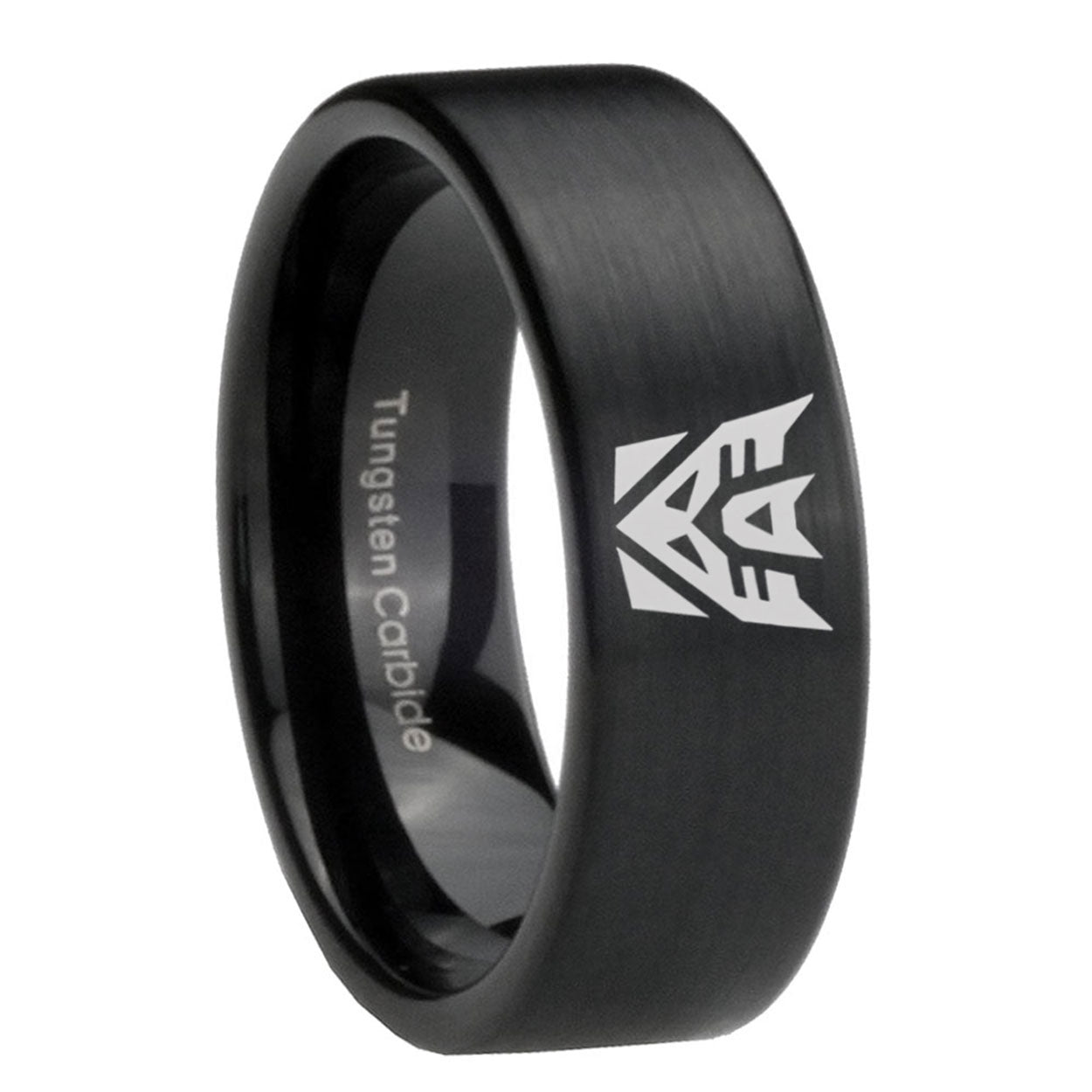 Intruding 6, 8mm Decepticon Transformers Pipe Cut Brush Black Tungsten Wedding Band Mens . Offer in both 6mm and 8mm band width brushed black plated finished from size 5 to 14