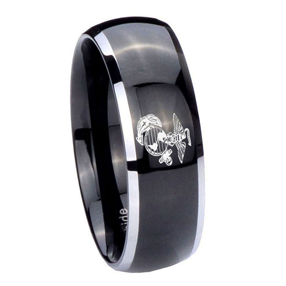 Intruding 5, 8mm Marine Dome Glossy Black 2 Tone Tungsten Carbide Mens Engagement Ring . Offer in both 5mm and 8mm band width polished black plated two tone finished from size 4 to 14