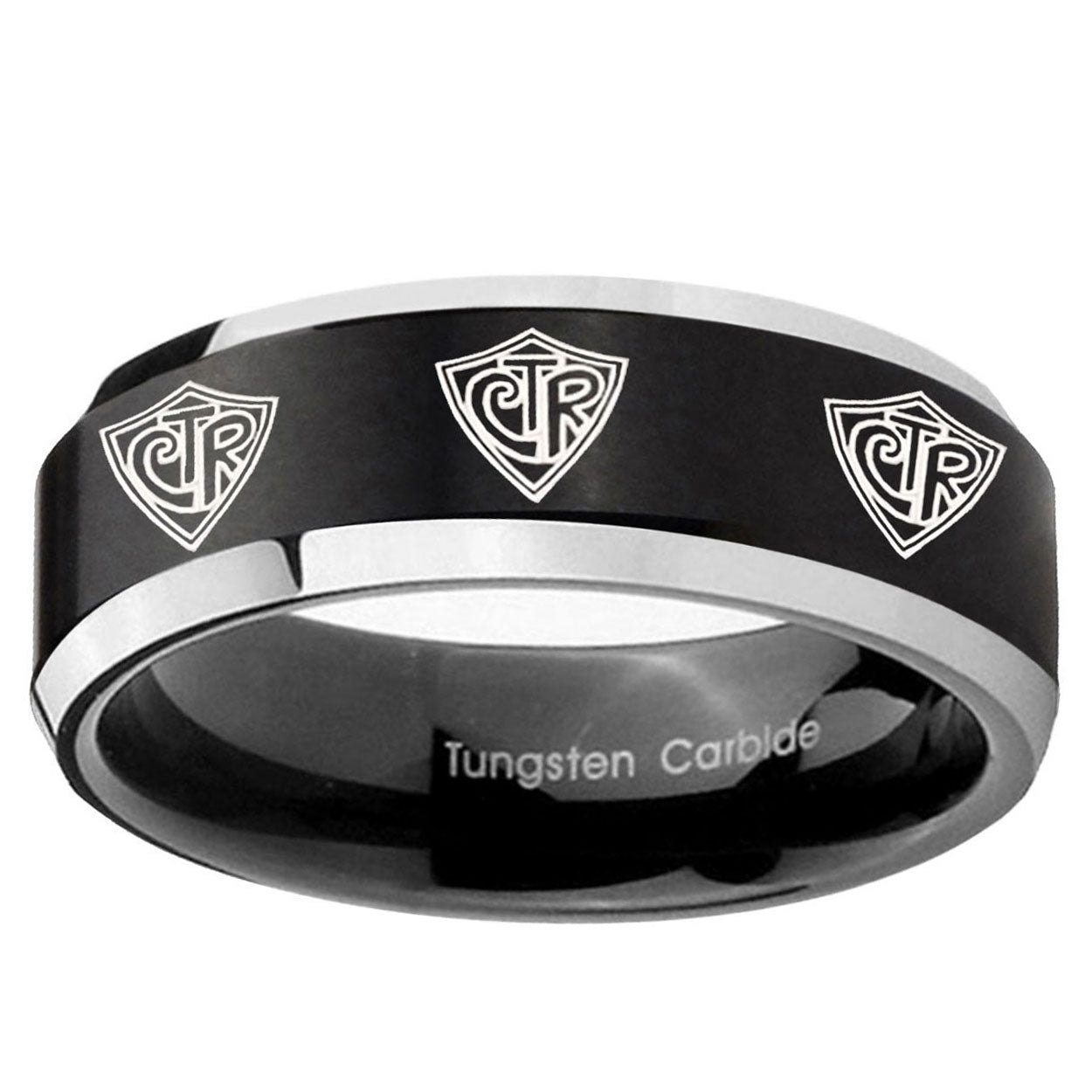 Intruding 5, 8mm Multiple CTR Beveled Edges Brush Black 2 Tone Tungsten Anniversary Ring . Offer in both 5mm and 8mm band width brushed black plated 2 tone finished from size 4 to 14