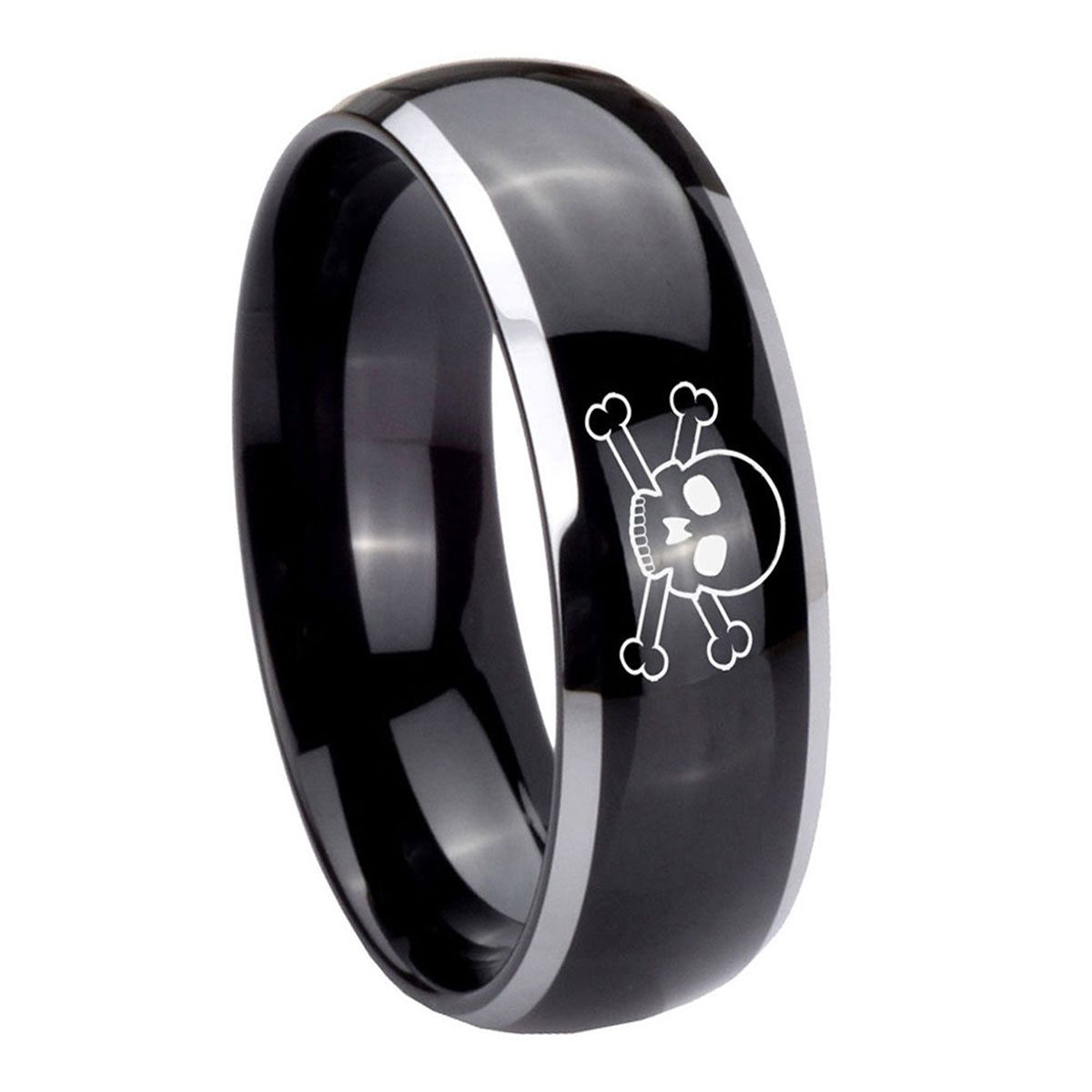 Style the 10mm Skull Dome Glossy Black 2 Tone Tungsten Carbide Men's Ring. This glossy black and 2-tone dome ring with Skull design is perfect for men.