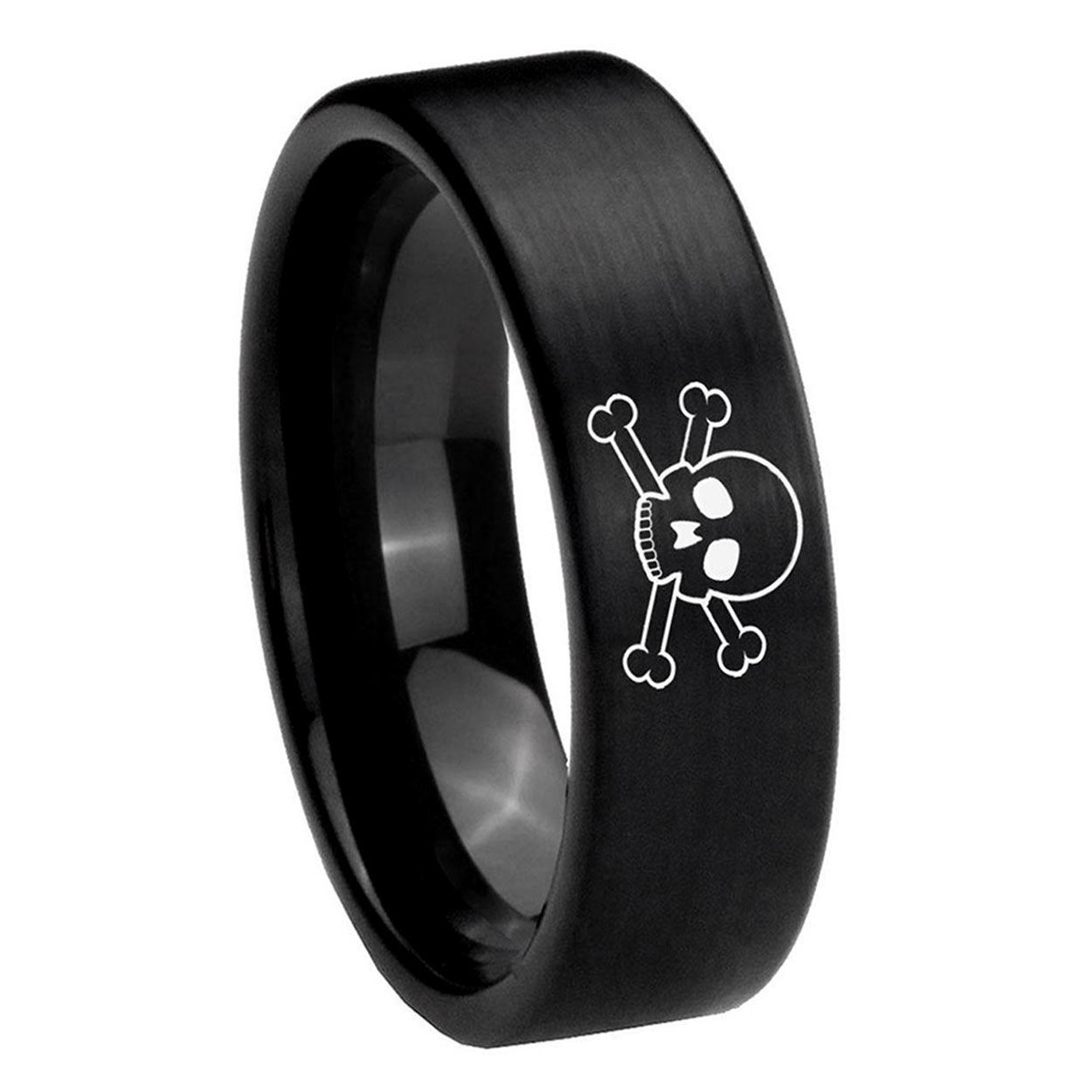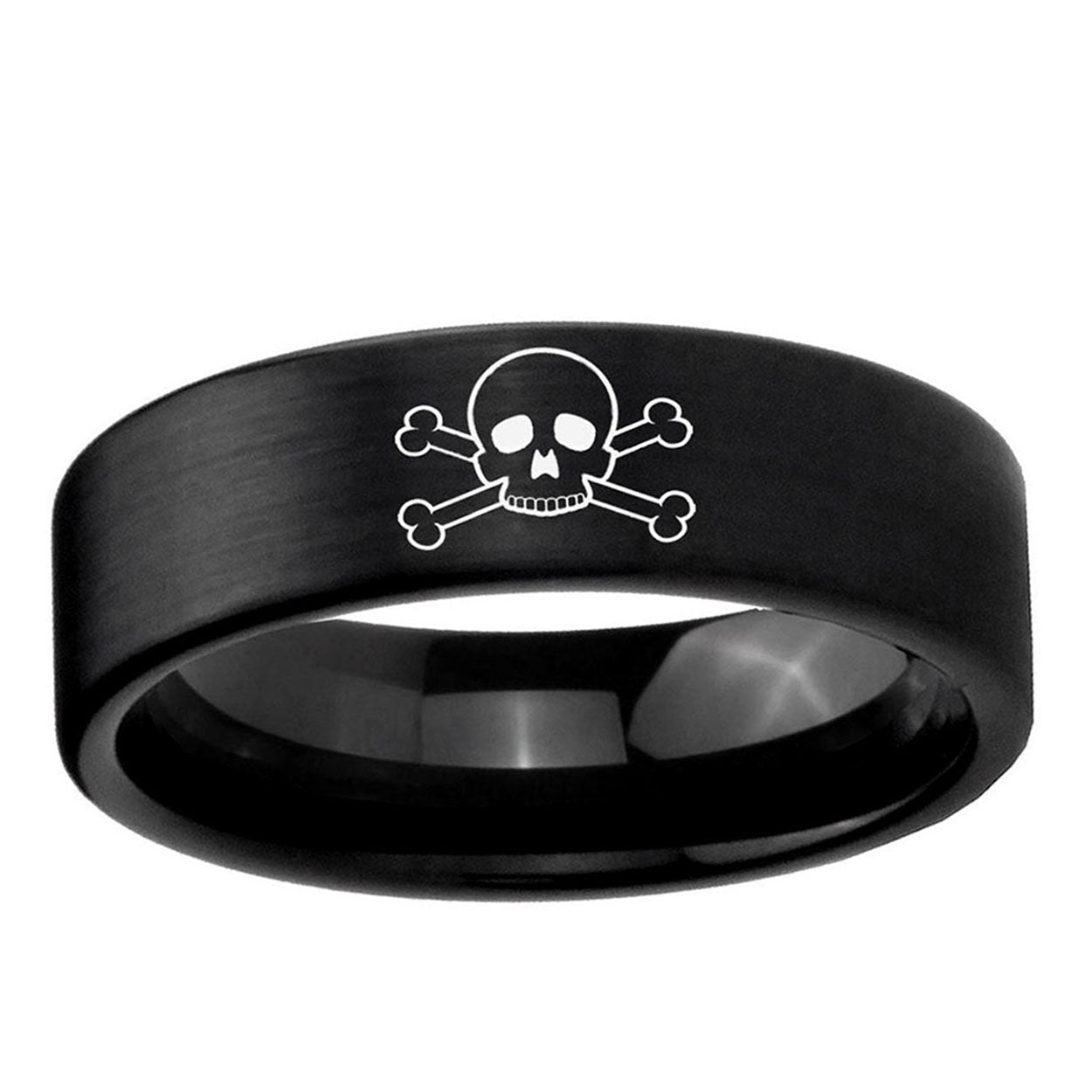 Intruding 6, 8mm Skull Pipe Cut Brush Black Tungsten Carbide Men's Engagement Band . Offer in both 6mm and 8mm band width brushed black plated finished from size 5 to 14