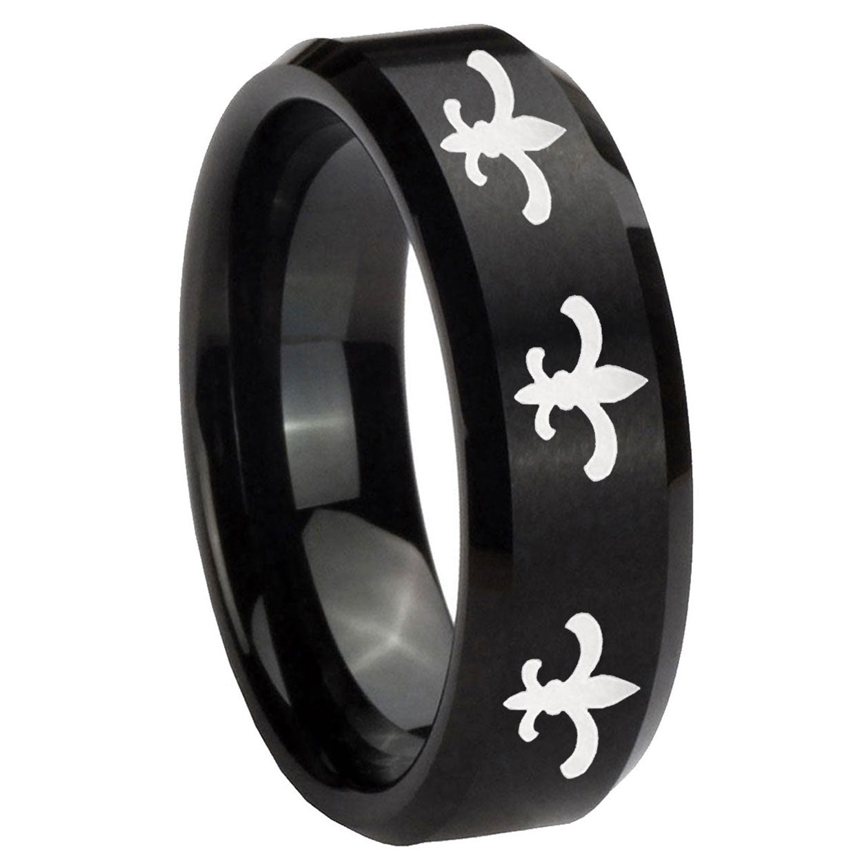5, 8mm Multiple Fleur-De-Lis Beveled Edges Brush Black Tungsten Wedding Bands Ring