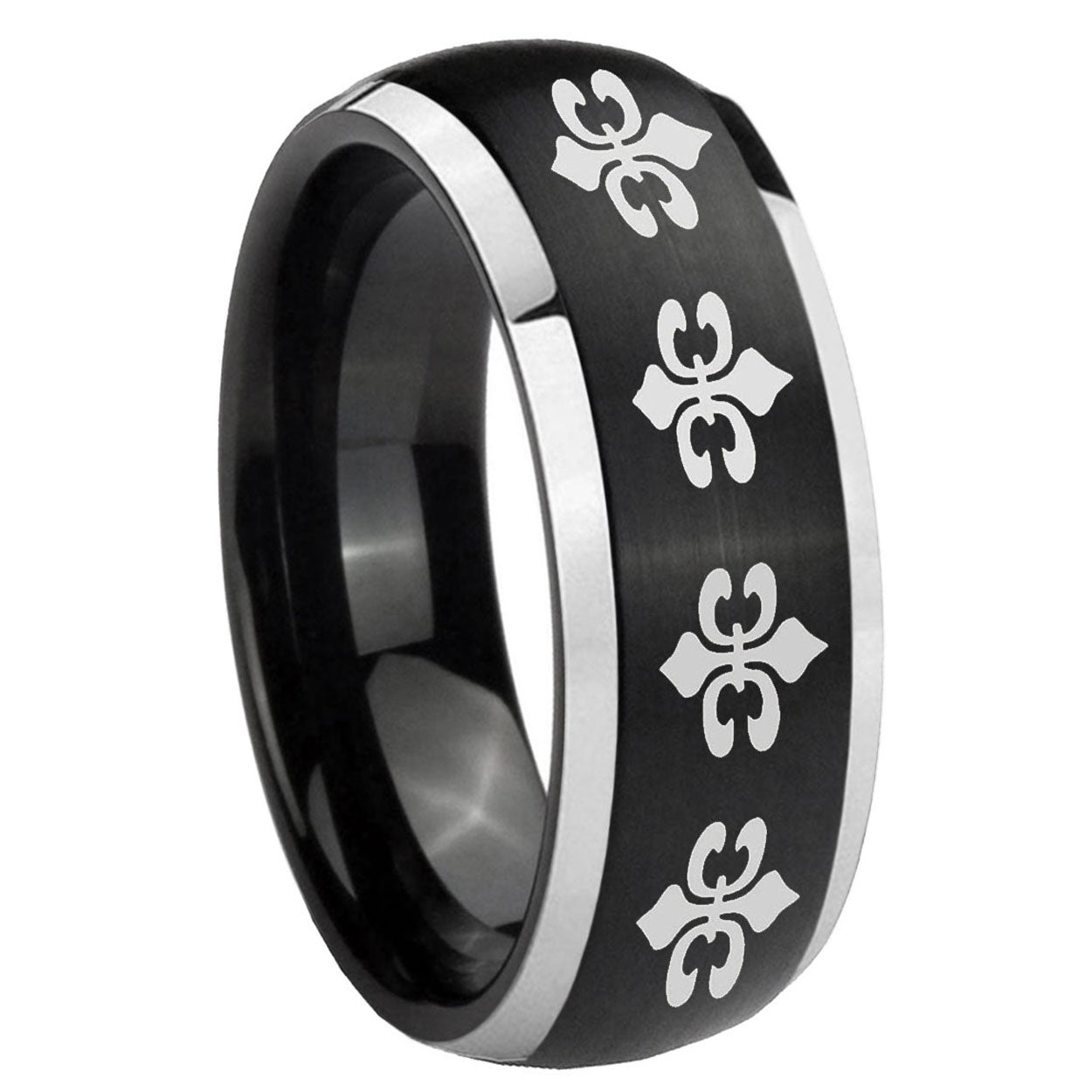 5, 8mm Multiple Fleur-De-Lis Dome Brushed Black 2 Tone Tungsten Custom Mens Ring