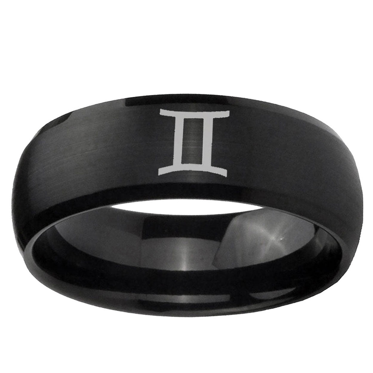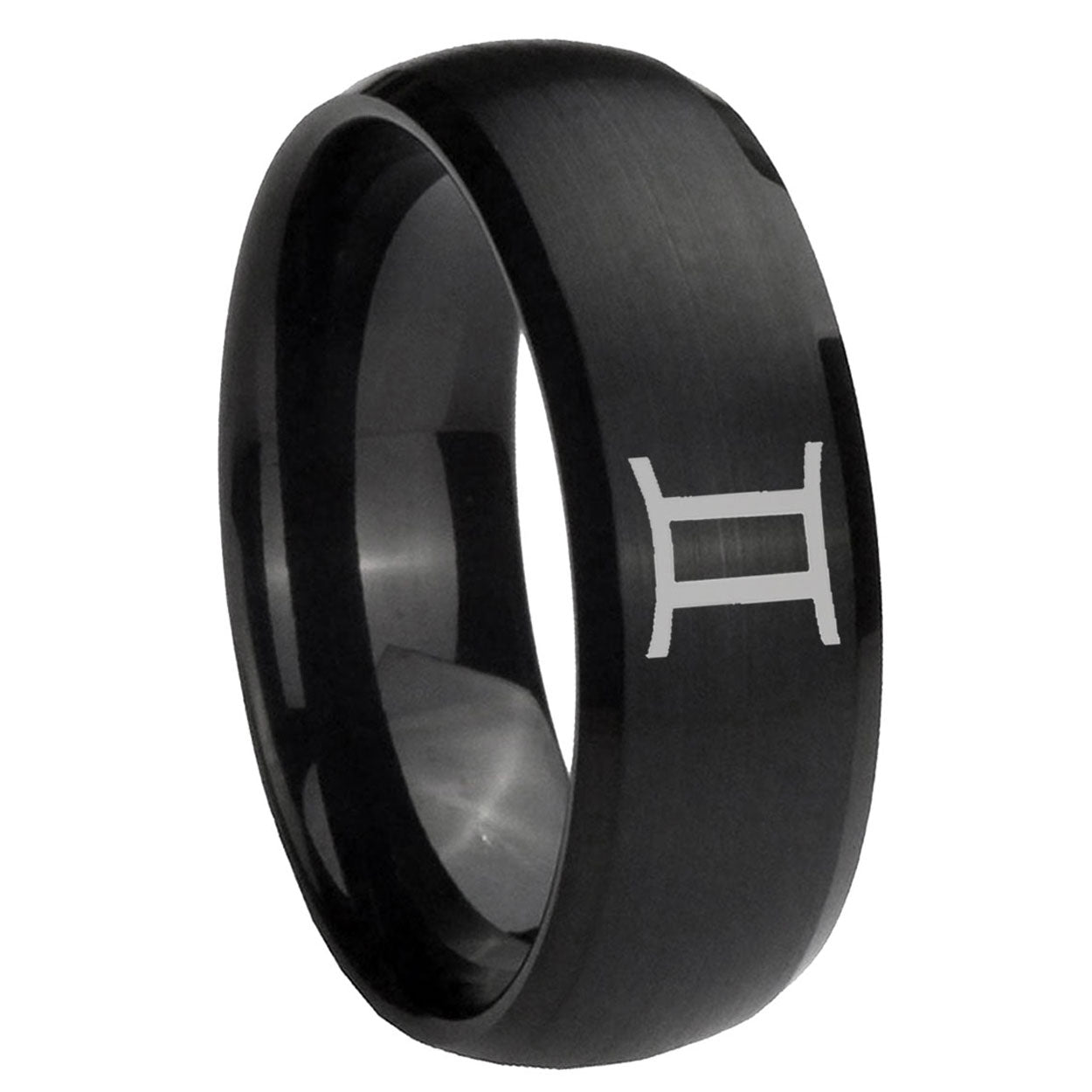 Intruding 5, 8mm Gemini Zodiac Dome Brush Black Tungsten Carbide Bands Ring . Offer in both 5mm and 8mm band width brush black plated finished from size 4 to 14