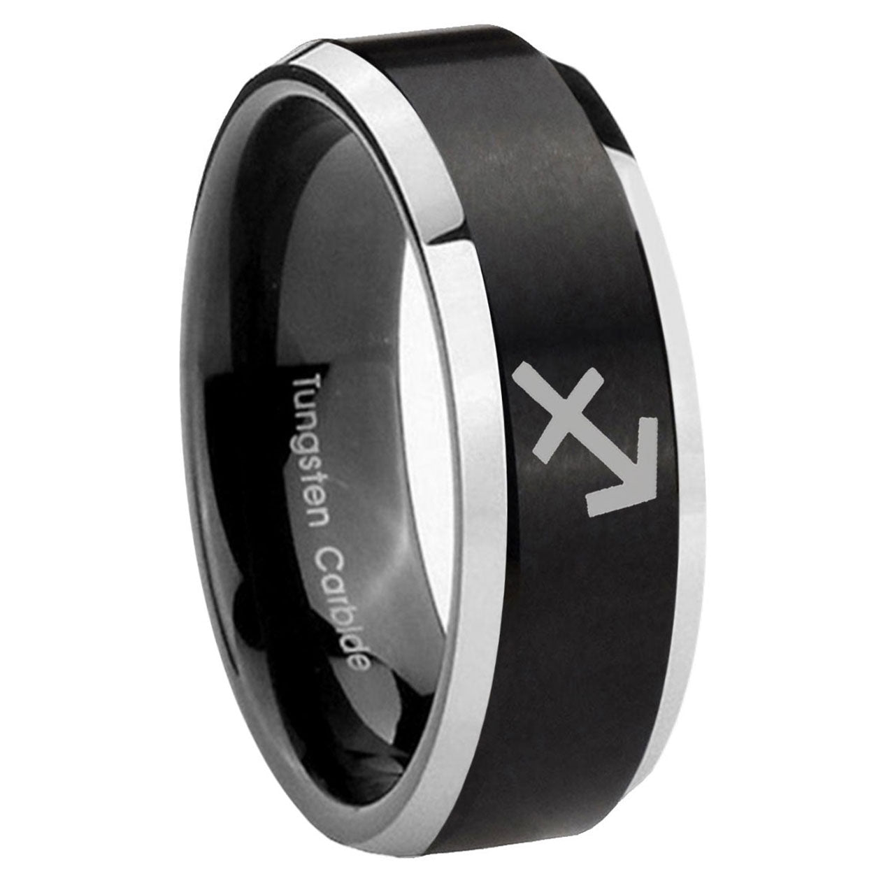 10mm Sagittarius Zodiac Beveled Edges Brush Black 2 Tone Tungsten Bands Ring